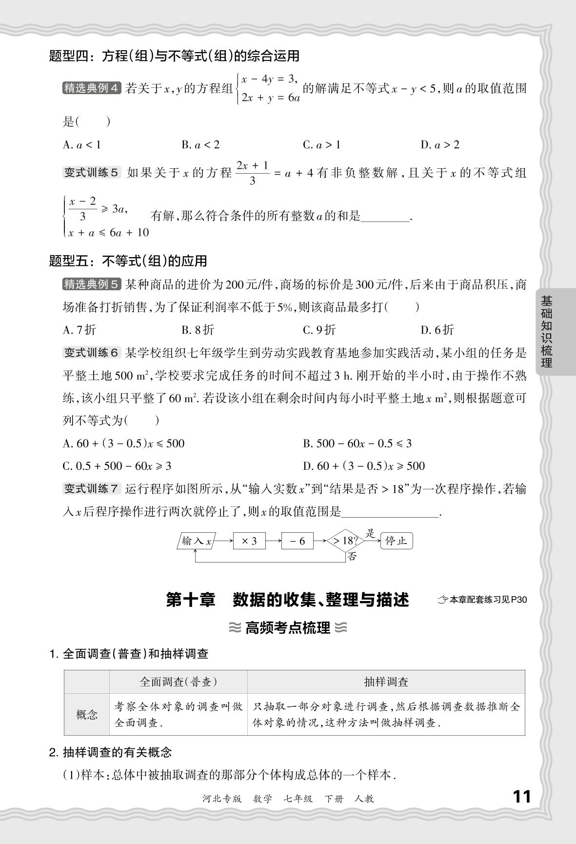 2024春下册七年级数学人教版 期末过课本河北版·基础知识梳理 第十章 数据的收集、整理与描述