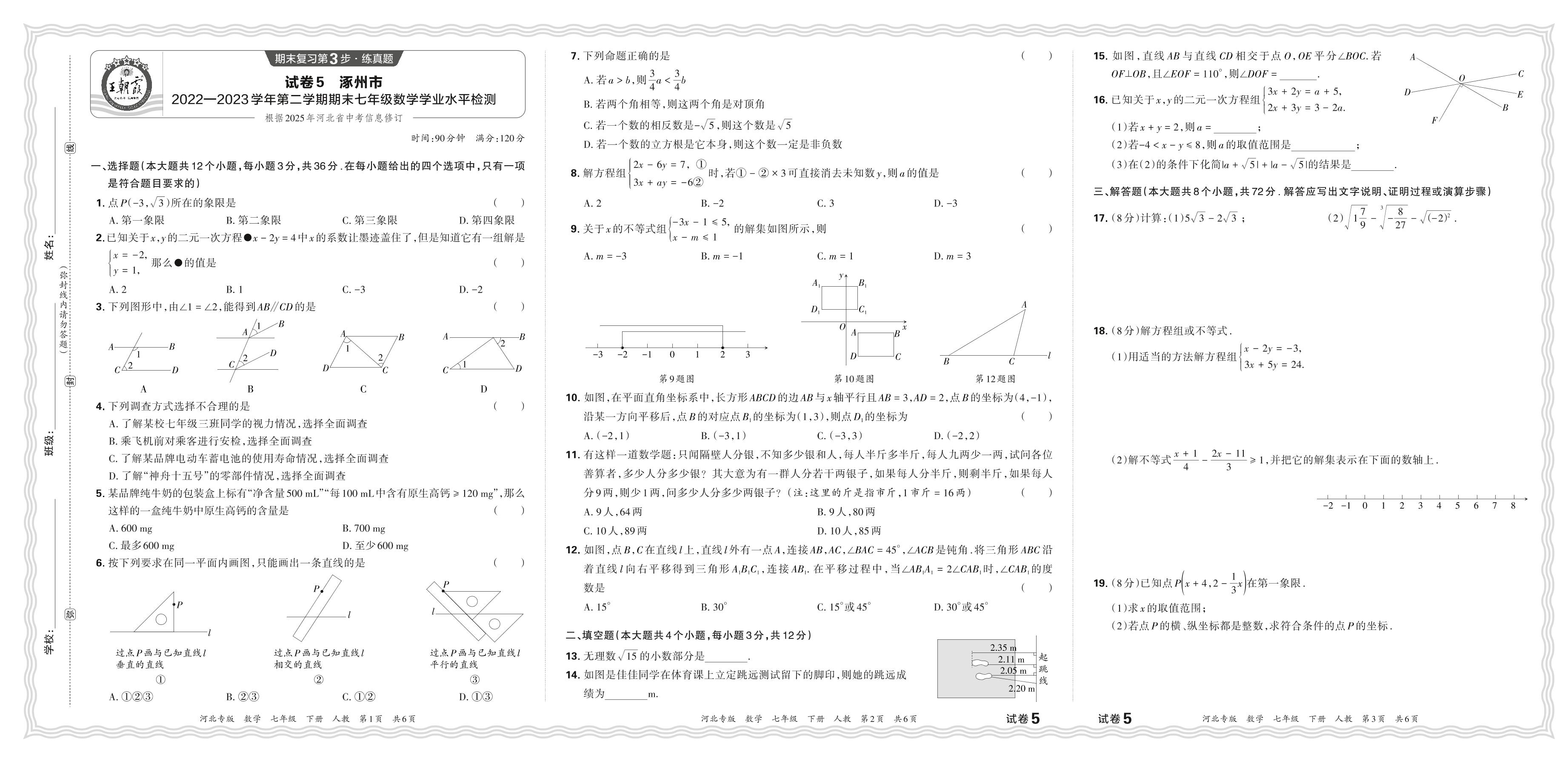 河北省保定市涿州市2022-2023学年第二学期期末七年级数学学业水平检测【5】