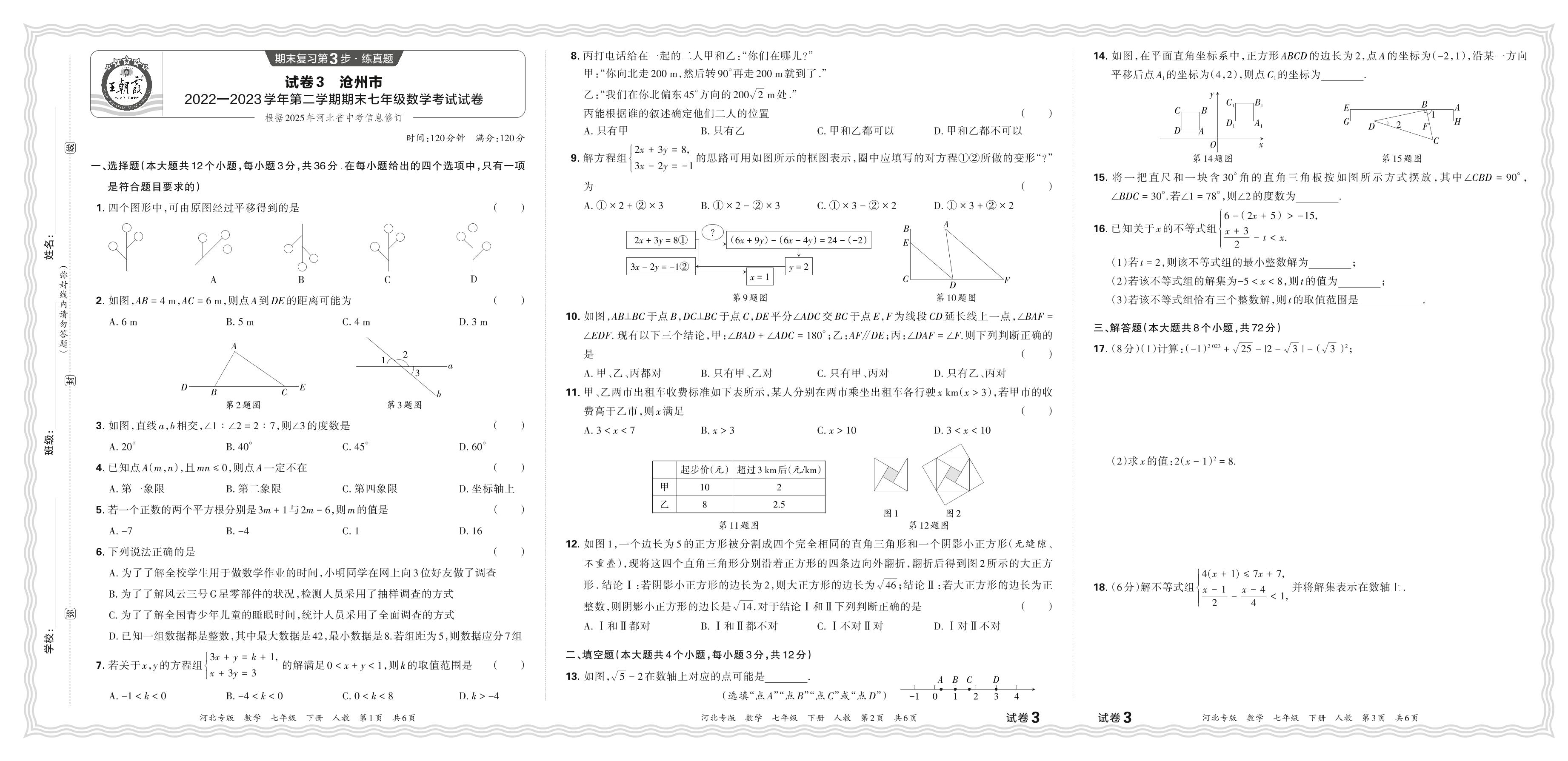 河北省沧州市2022-2023学年第二学期期末七年级数学考试试卷(人教版)【3】