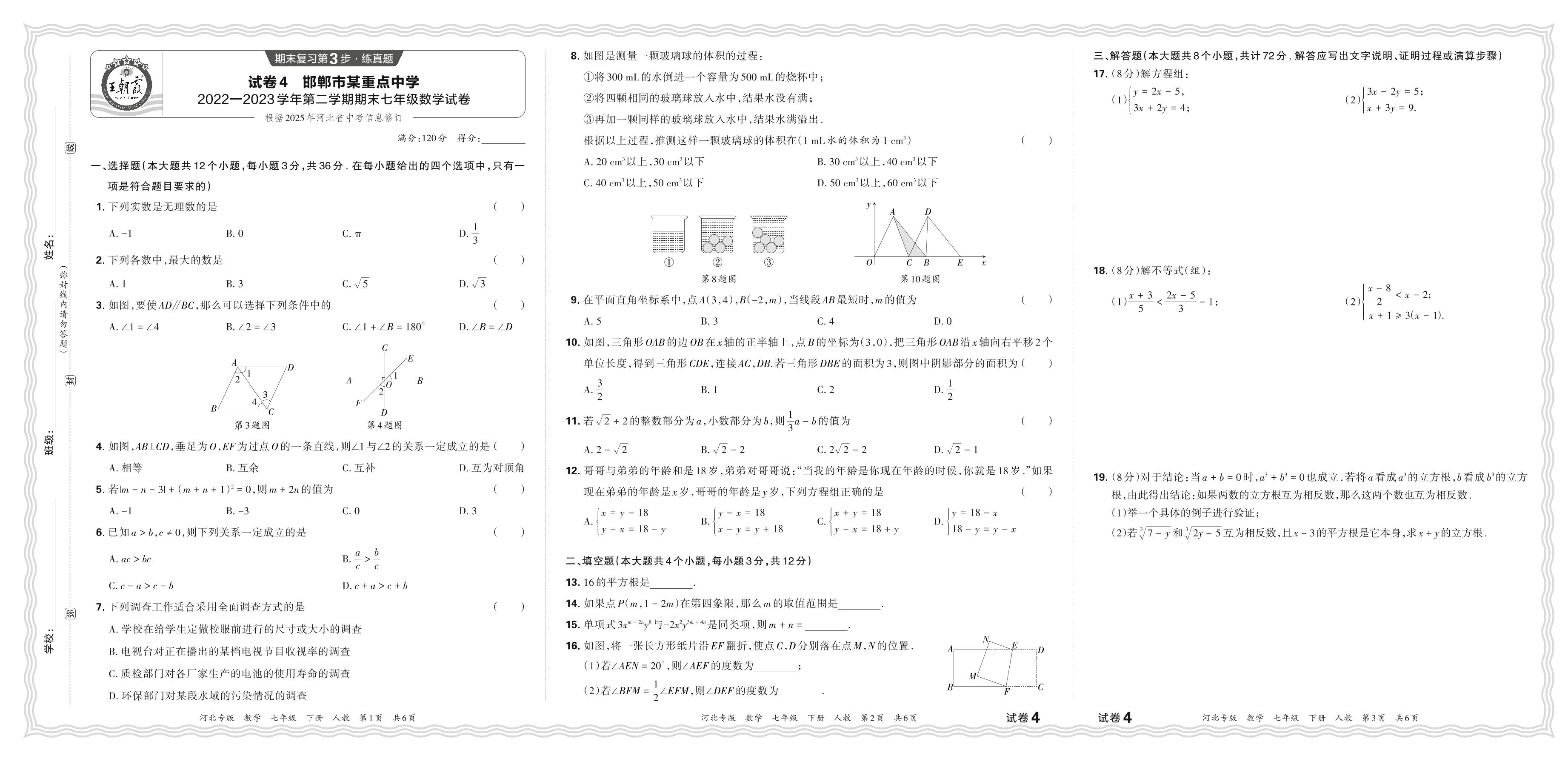 河北省邯郸市某重点中学2022-2023学年第二学期期末七年级数学试卷【4】