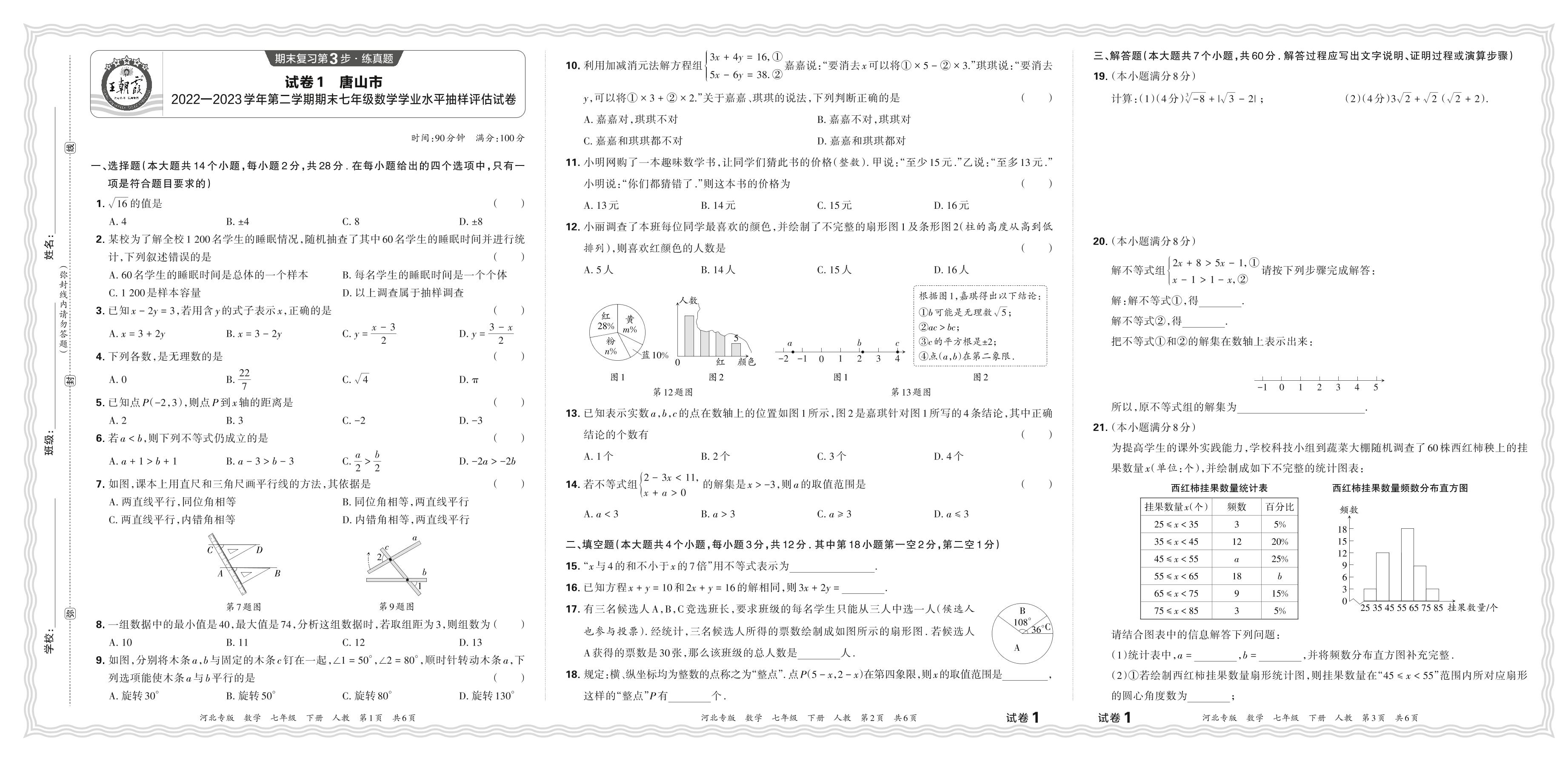 河北省唐山市2022-2023学年第二学期期末七年级数学学业水平抽样评估试卷(人教版)【1】