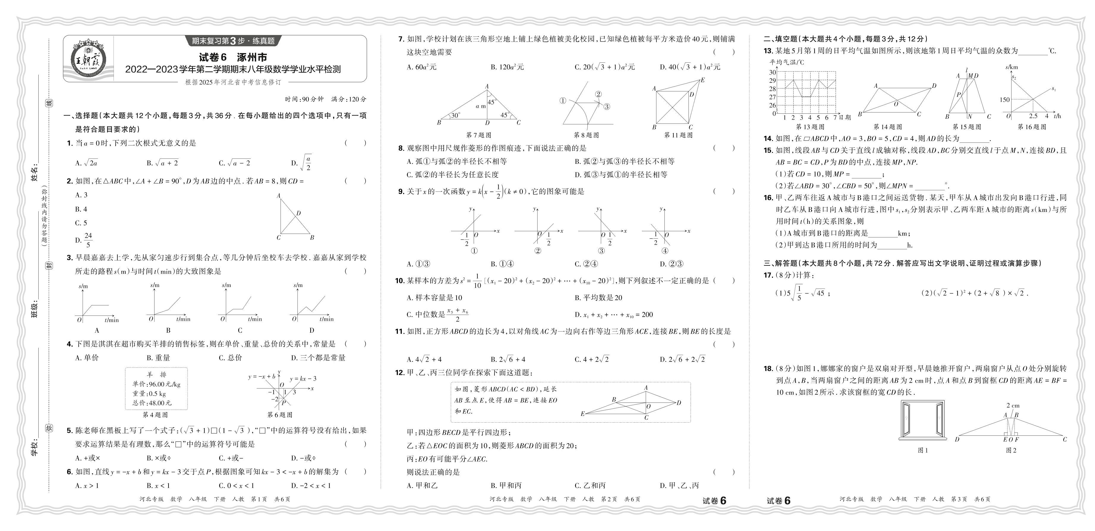 河北省保定市涿州市2022-2023学年第二学期期末八年级数学学业水平检测(人教版)【6】