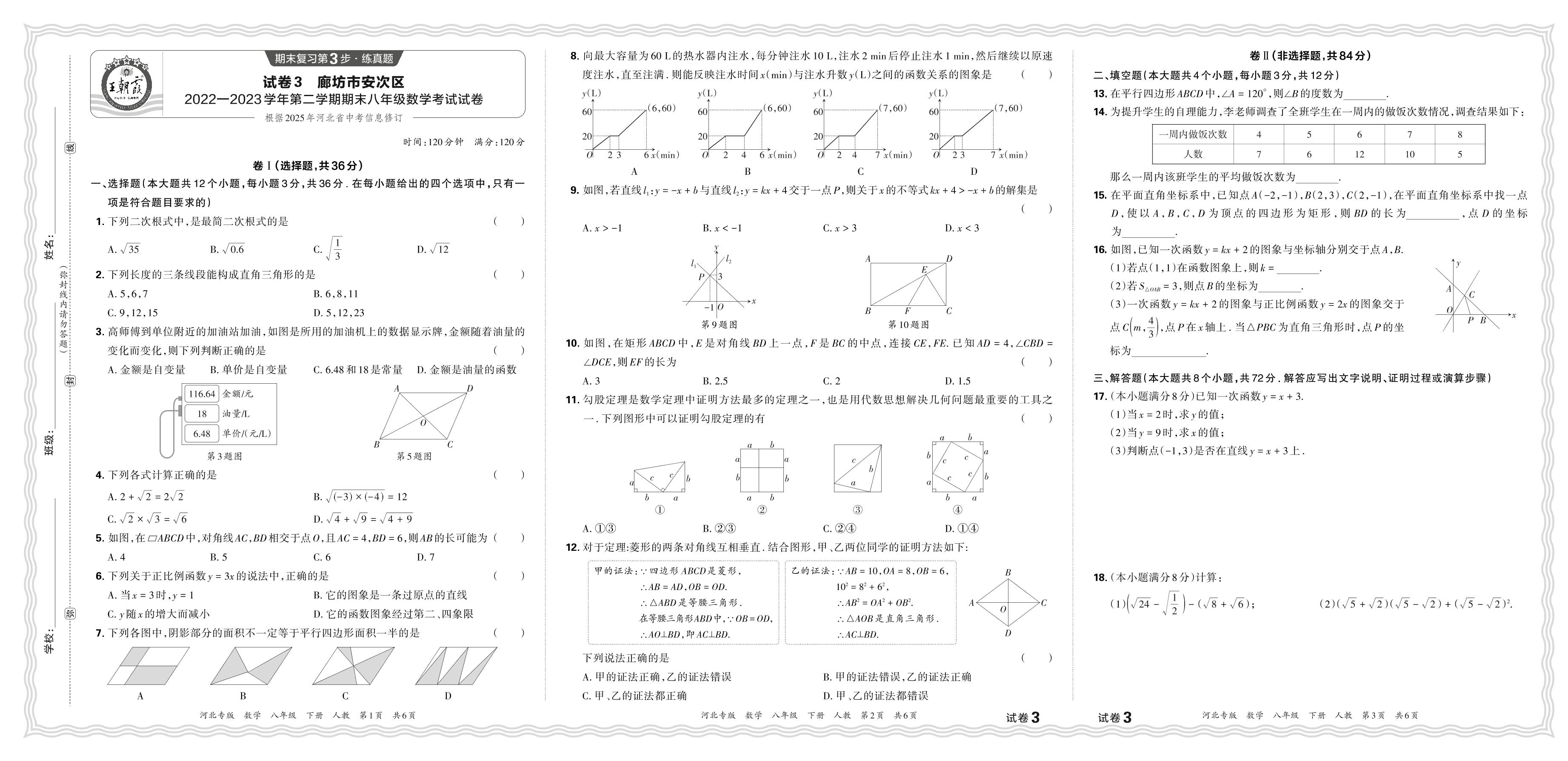 河北省廊坊市安次区2022-2023学年第二学期期末八年级数学考试试卷(人教版)【3】