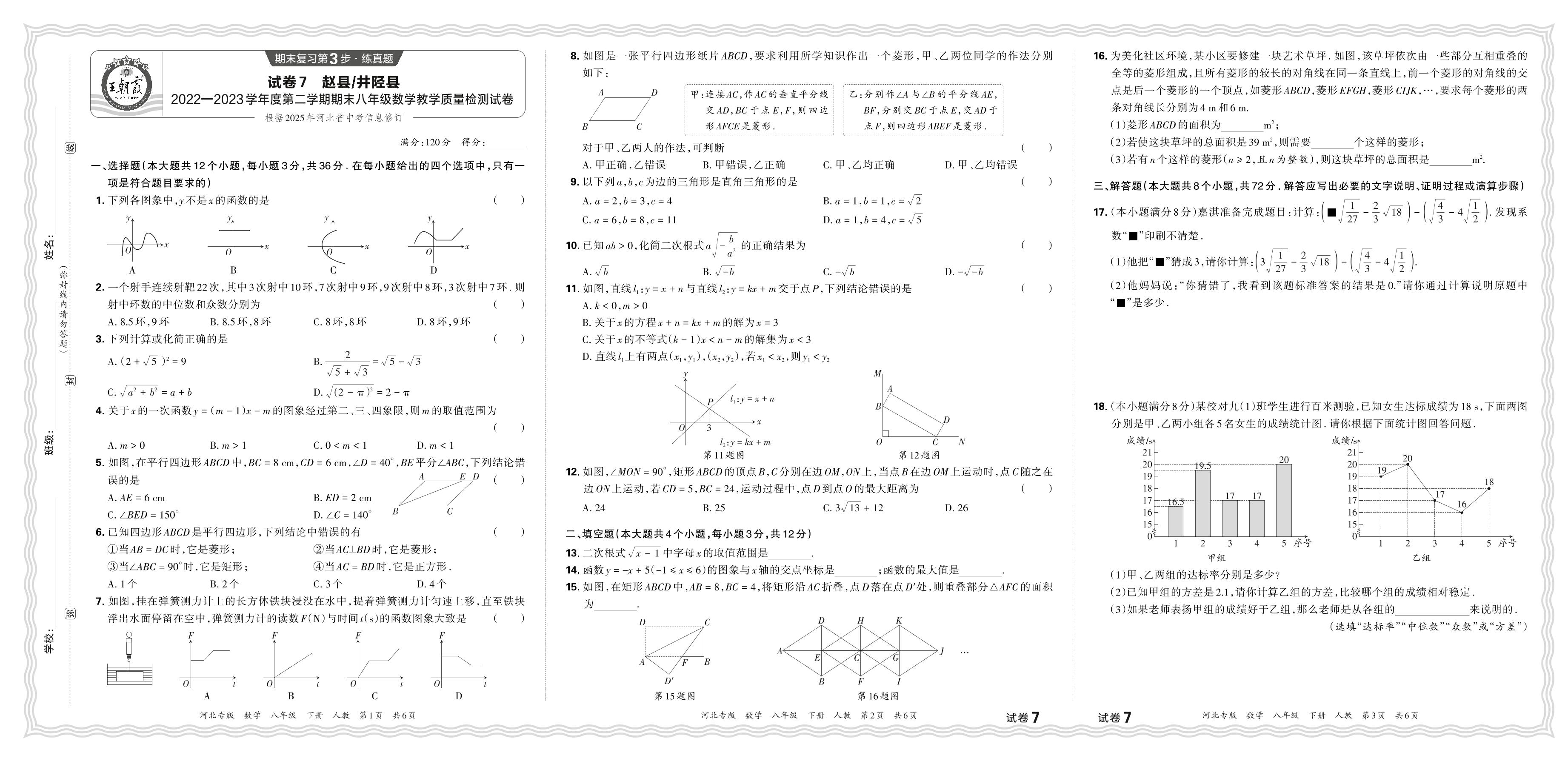河北省石家庄市赵县、井陉县2022-2023学年度第二学期期末八年级数学教学质量检测试卷(人教版)【7】