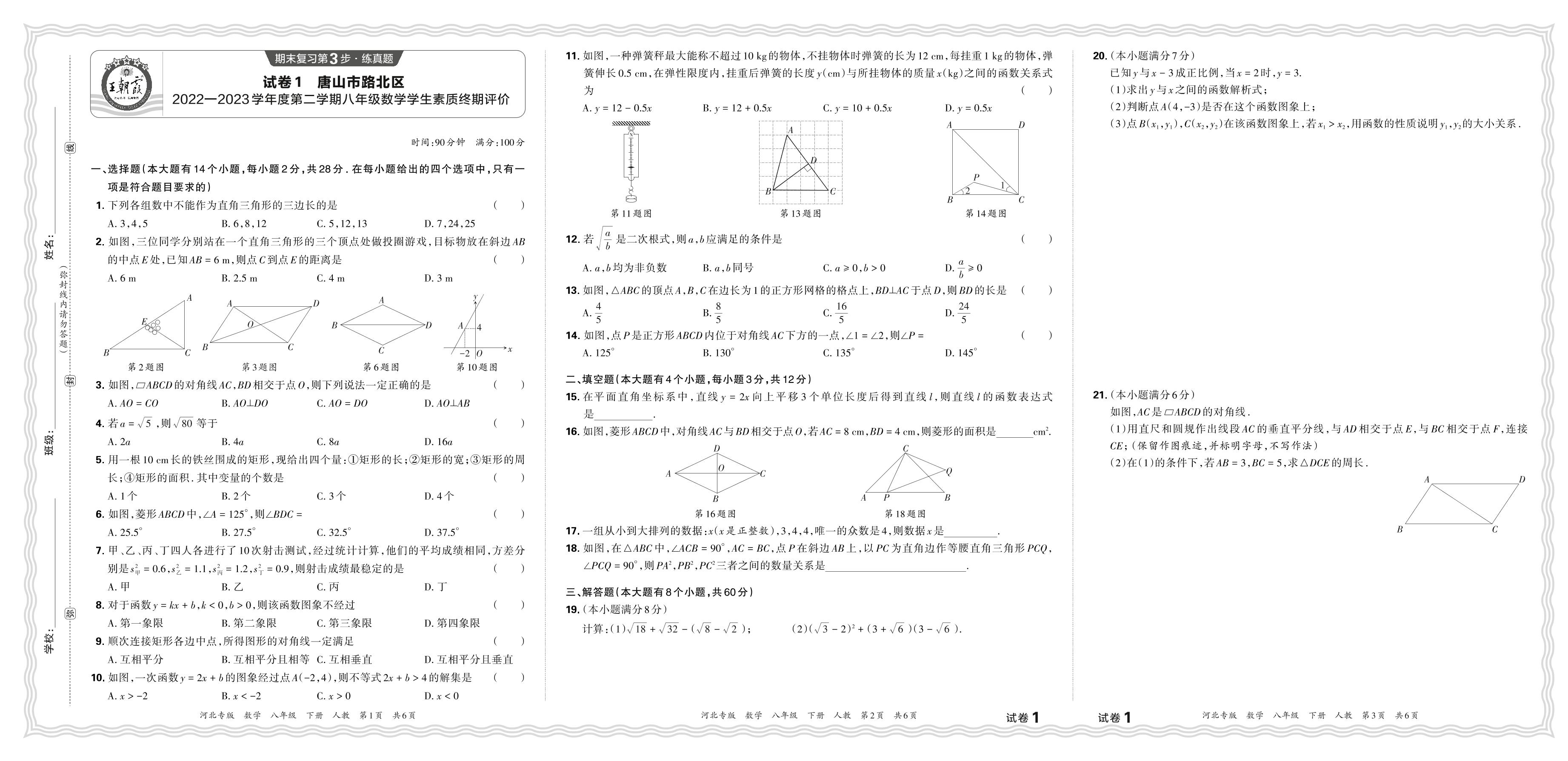 八年级数学人教版下册期末卷