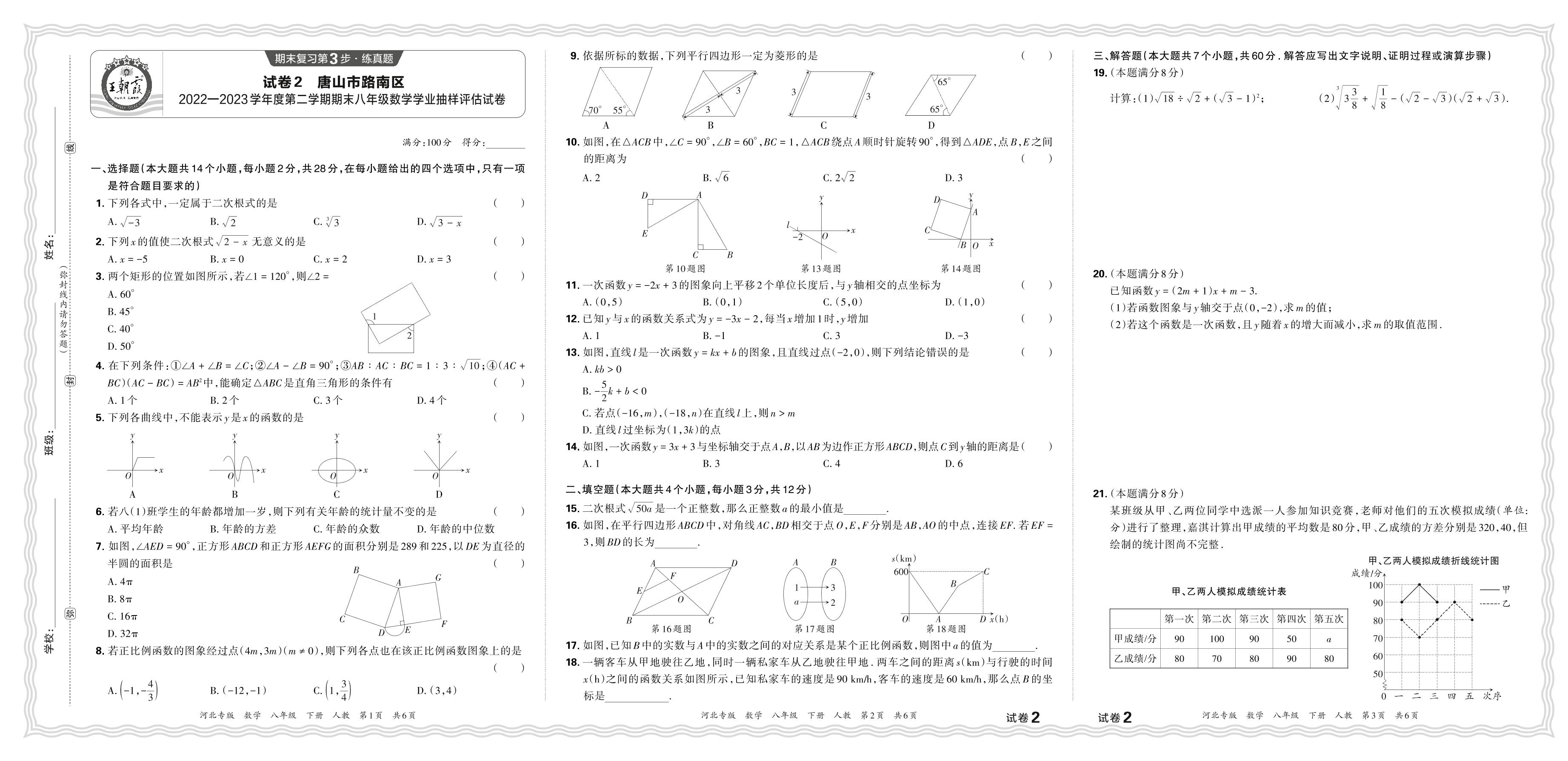 河北省唐山市路南区2022-2023学年度第二学期期末八年级数学学业抽样评估试卷(人教版)【2】