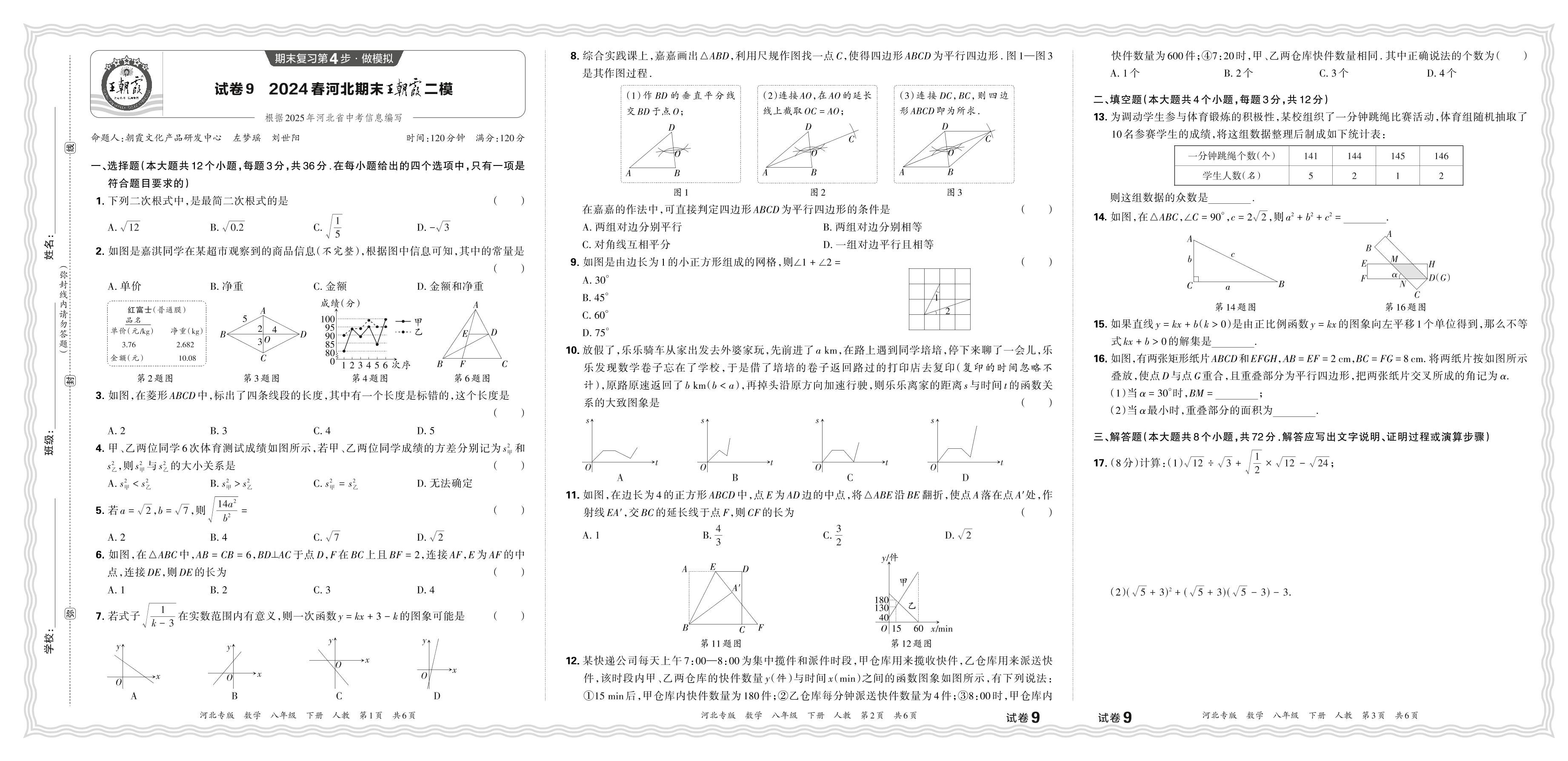 2024春下册八年级数学人教版 河北期末王朝霞二模【9】