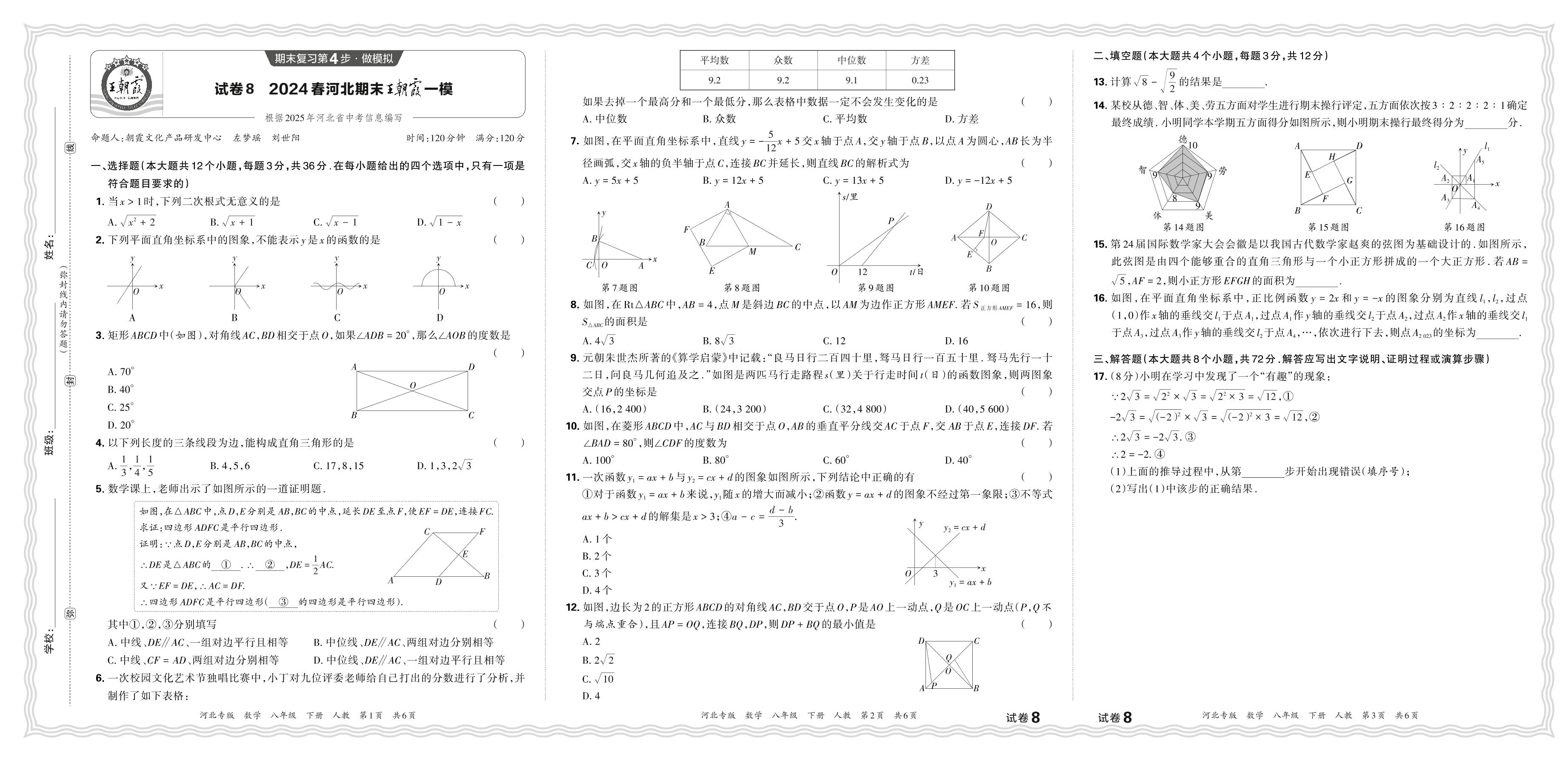2024春下册八年级数学人教版 河北期末王朝霞一模【8】