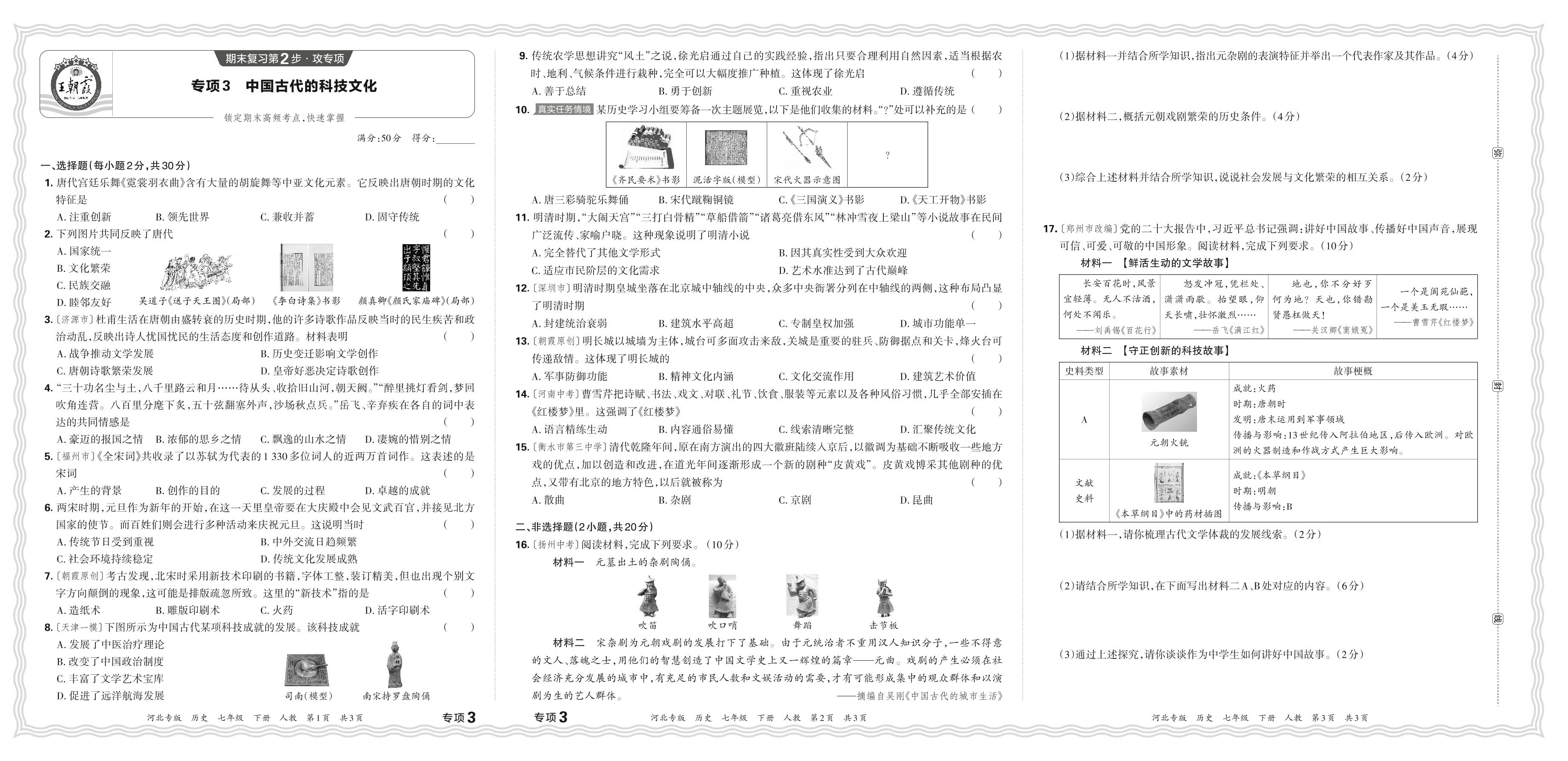 2024春下册七年级历史人教版 期末专项卷河北版·中国古代的科技文化【3】