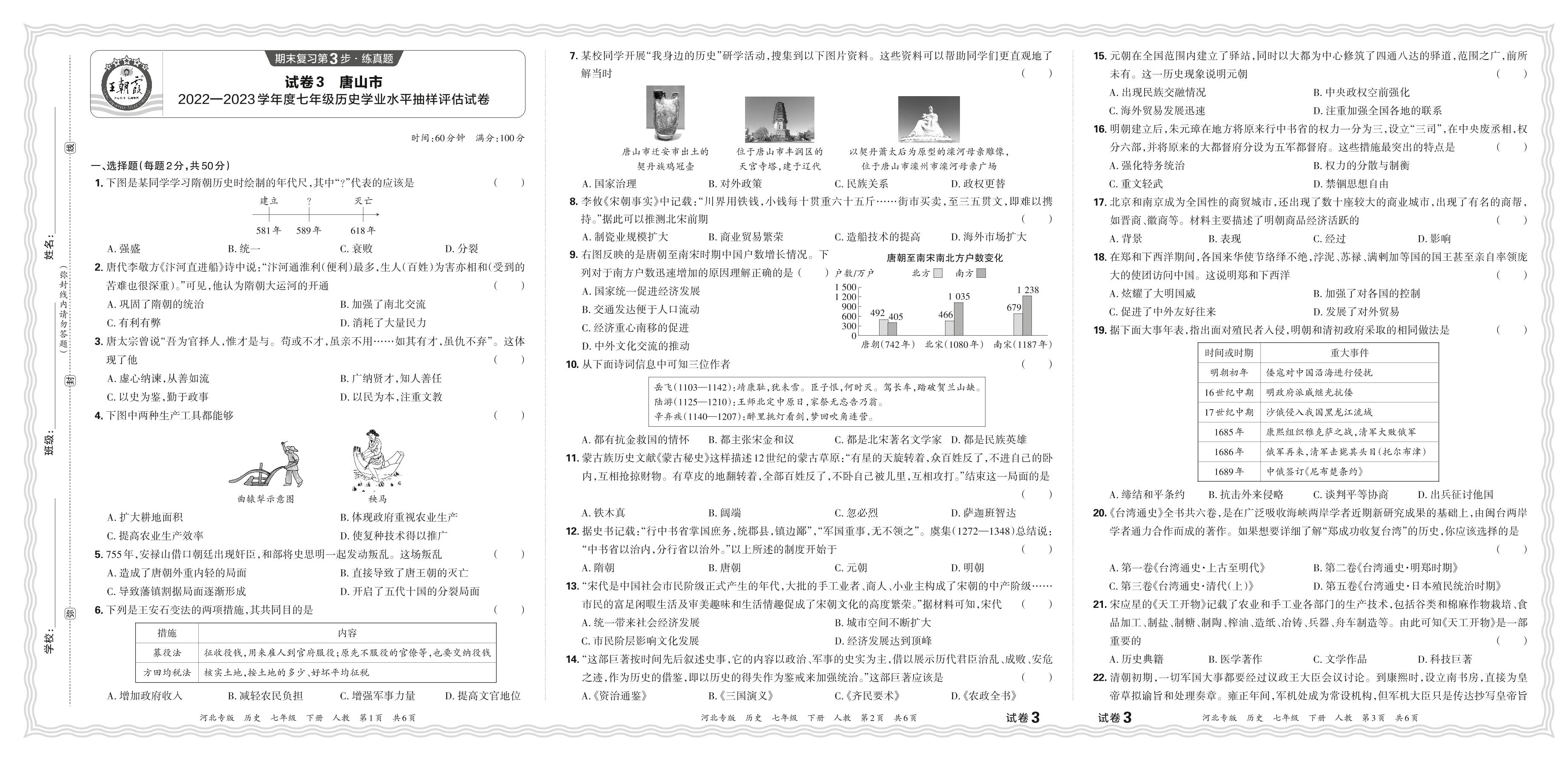 河北省唐山市2022-2023学年度七年级历史学业水平抽样评估试卷(人教版)【3】