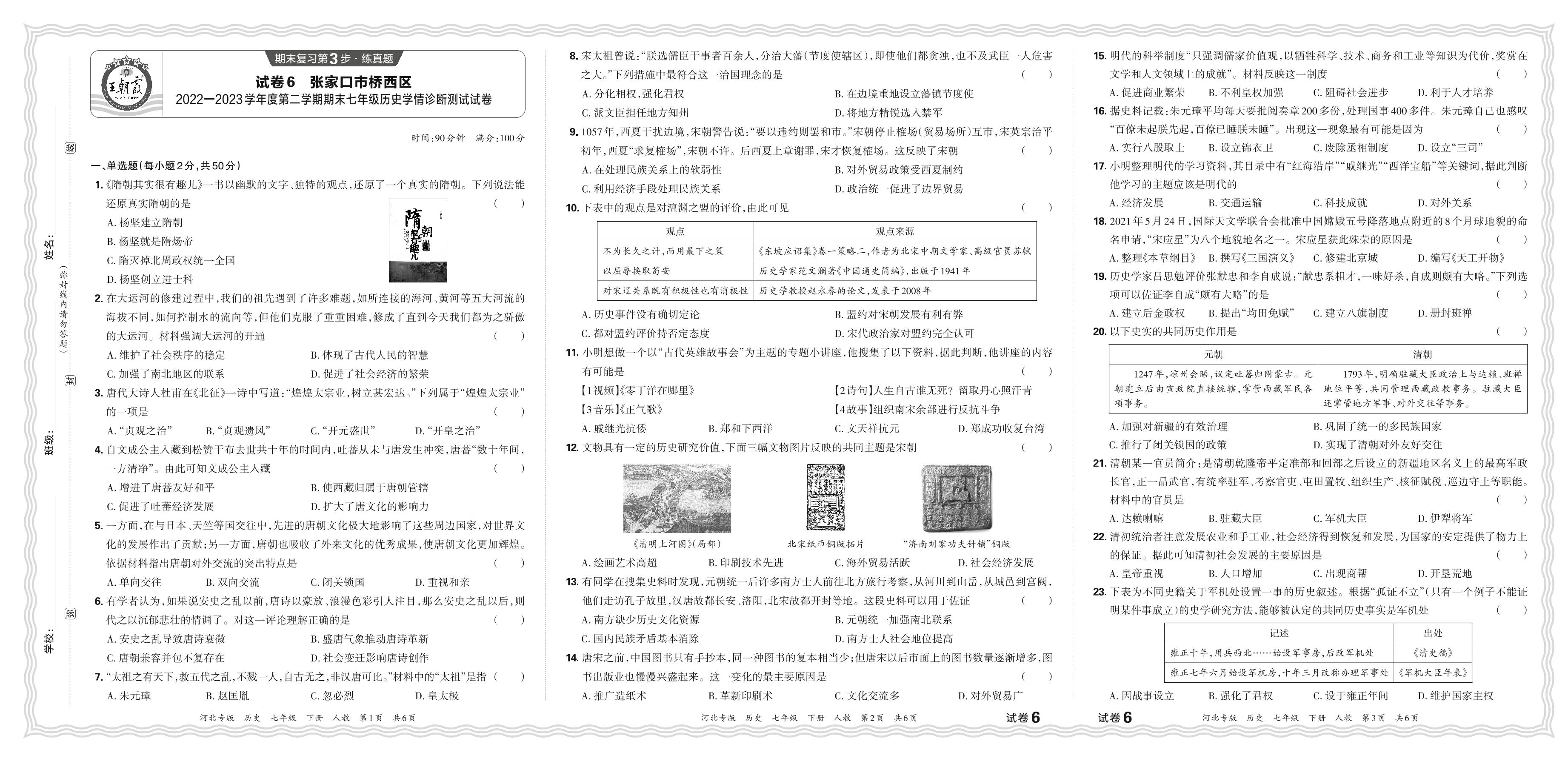 河北省张家口市桥西区2022-2023学年度第二学期期末七年级历史学情诊断测试试卷(人教版)【6】