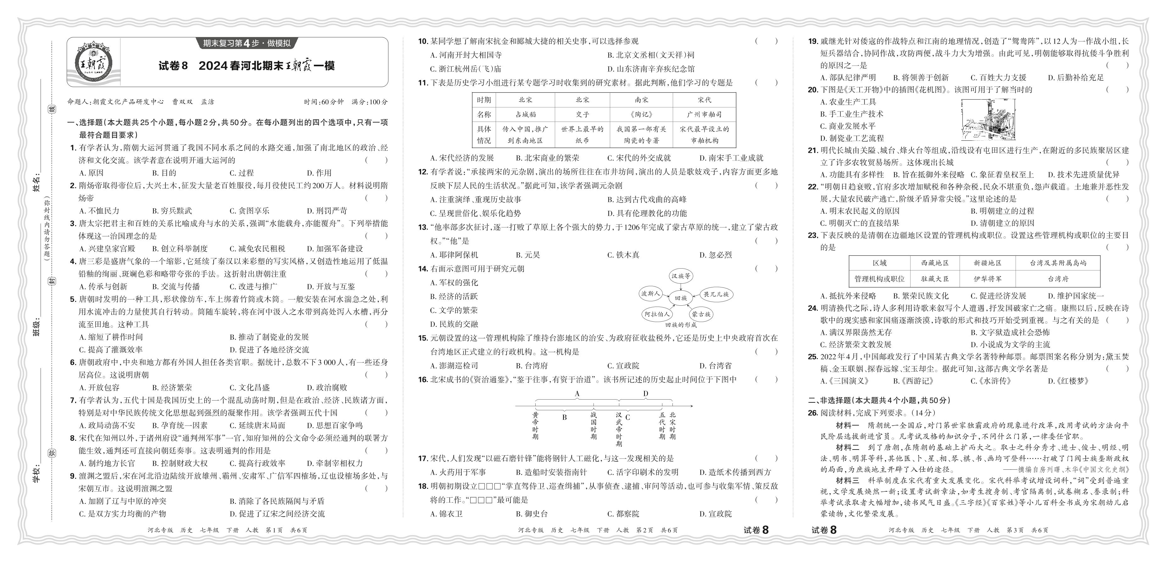 2024春下册七年级历史人教版 河北期末王朝霞一模【8】