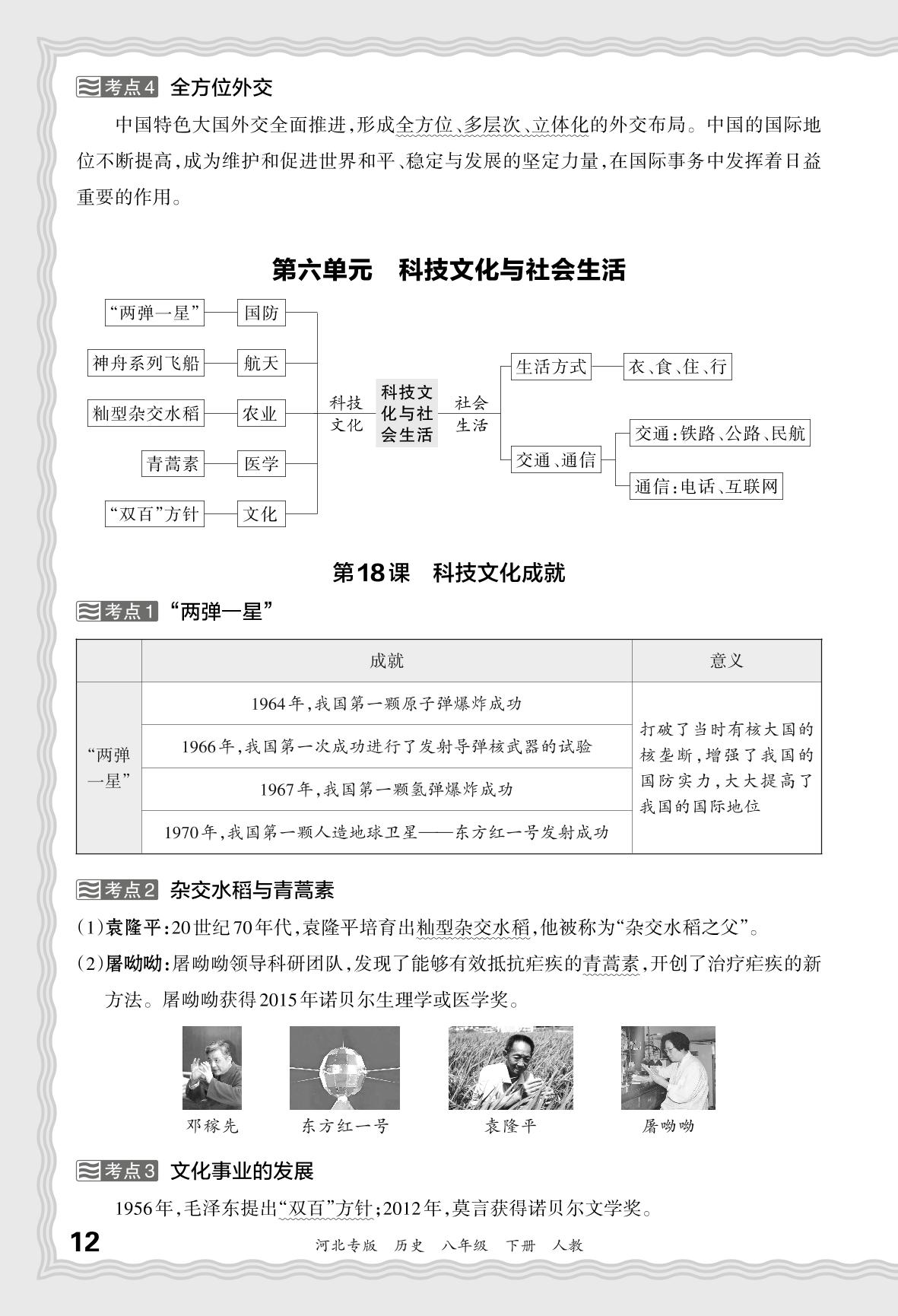 2024春下册八年级历史人教版 期末过课本河北版·基础知识梳理 第六单元 科技文化与社会生活