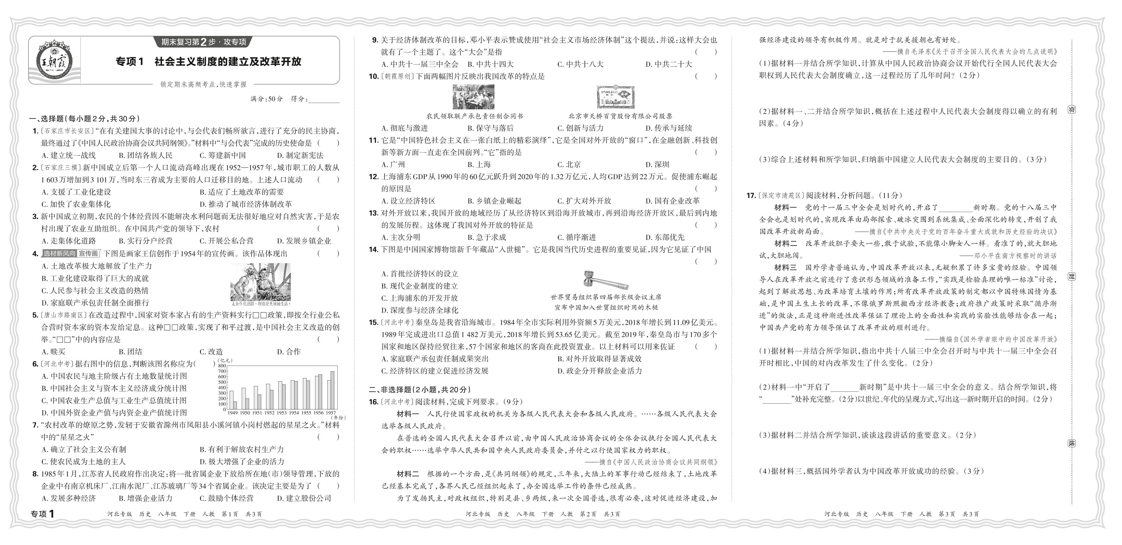 2024春下册八年级历史人教版 期末专项卷河北版·社会主义制度的建立及改革开放【1】