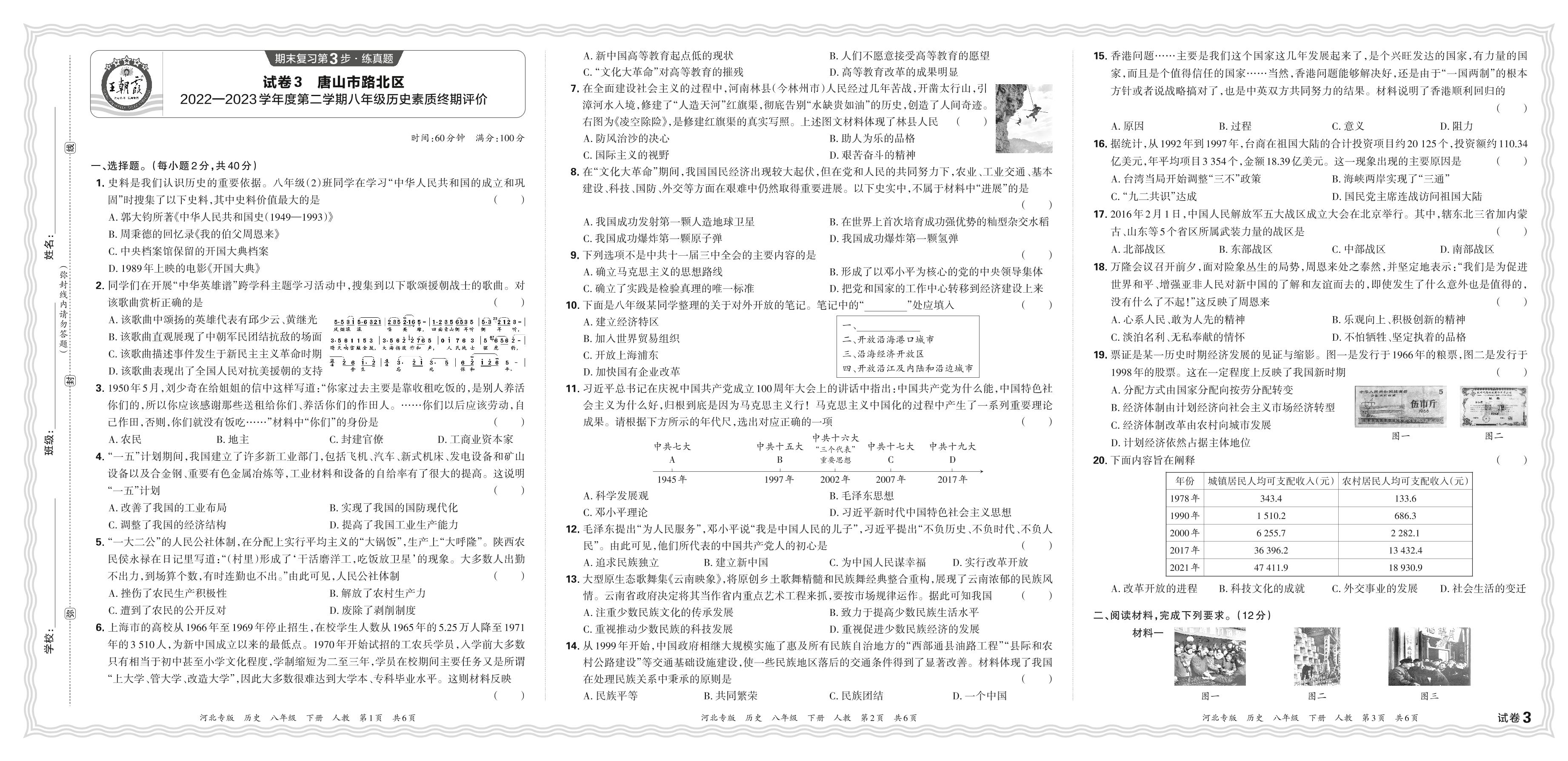 河北省唐山市路北区2022-2023学年度第二学期八年级历史素质终期评价(人教版)【3】