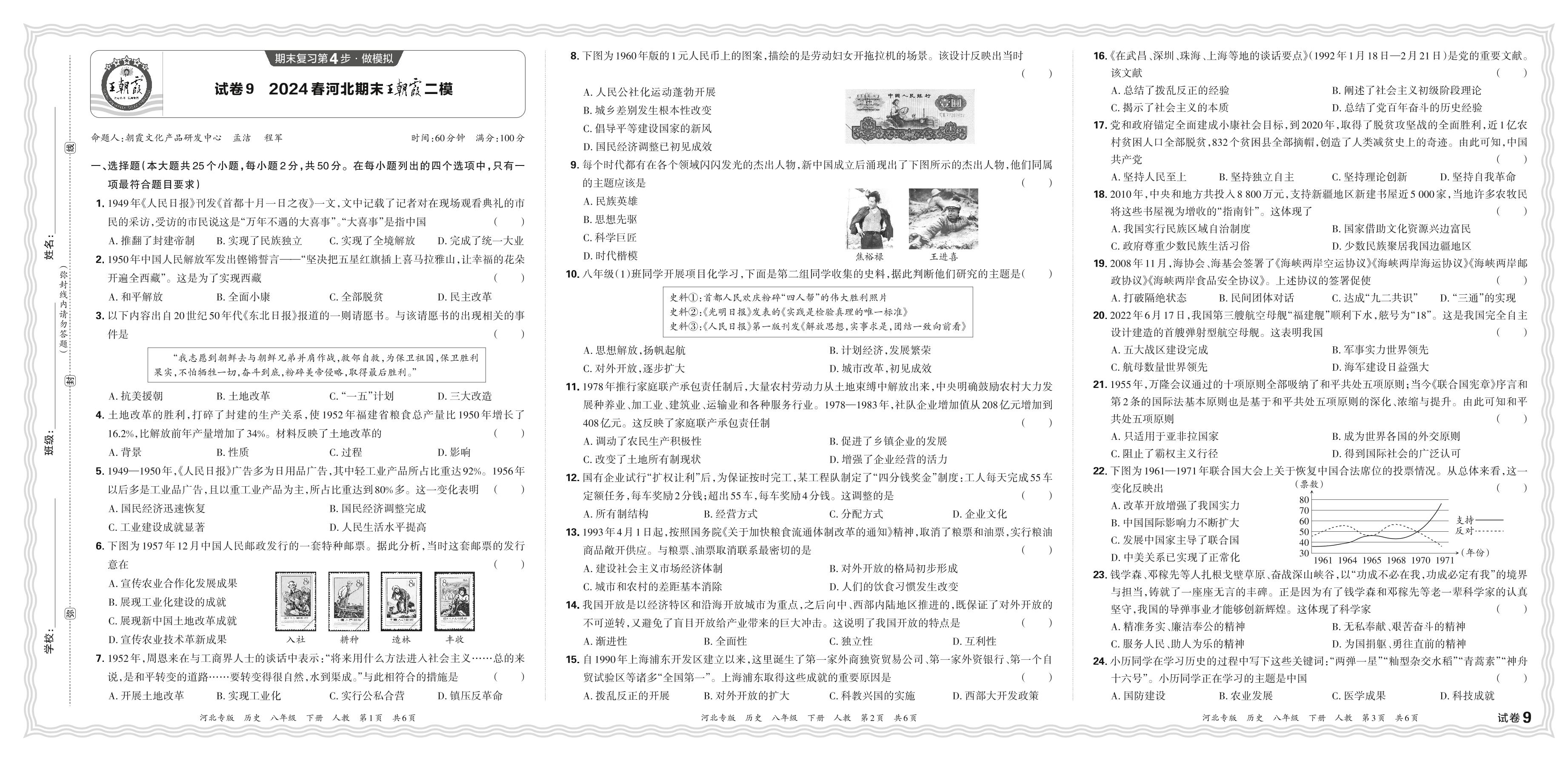 2024春下册八年级历史人教版 河北期末王朝霞二模【9】