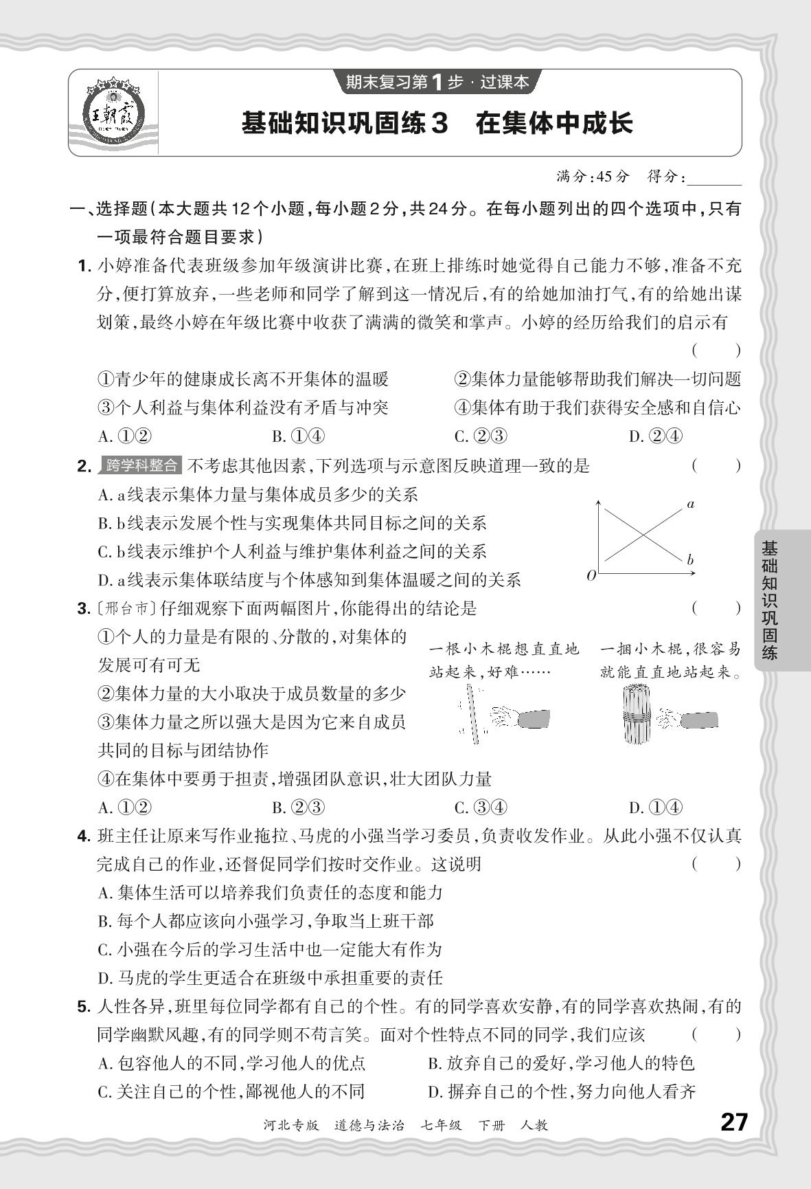 2024春下册七年级道德与法治人教版 期末过课本河北版·基础知识巩固练 在集体中成长【3】