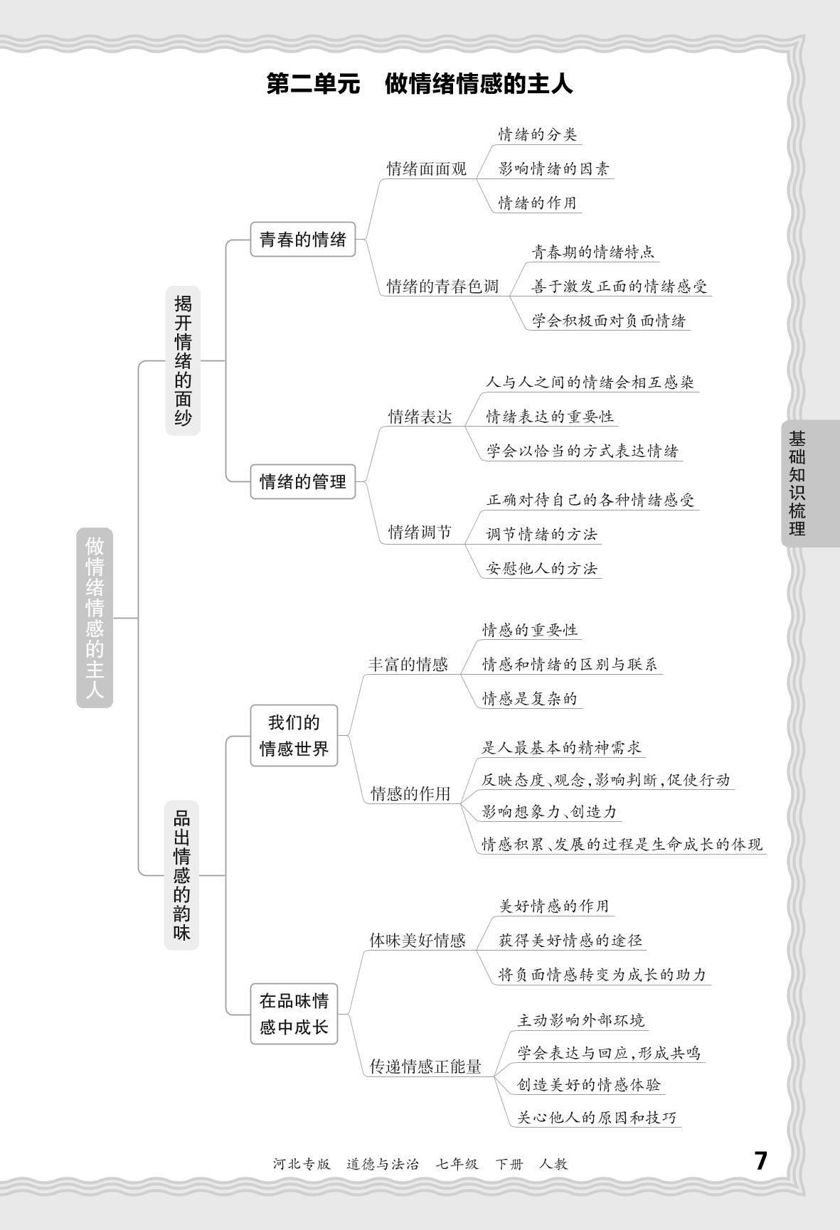 2024春下册七年级道德与法治人教版 期末过课本河北版·基础知识梳理 第二单元 做情绪情感的主人