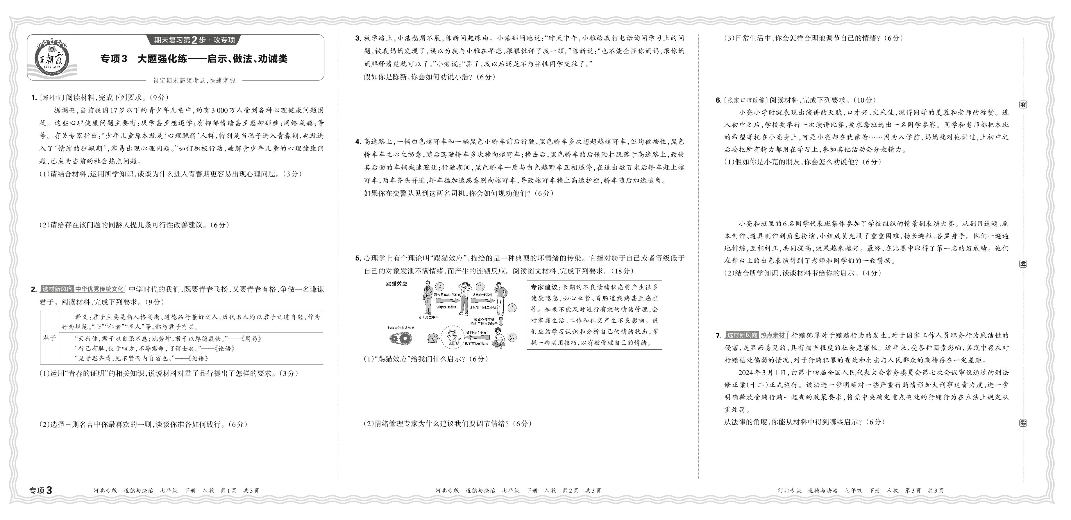 2024春下册七年级道德与法治人教版 期末专项卷河北版·大题强化练——启示、做法、劝诫类【3】