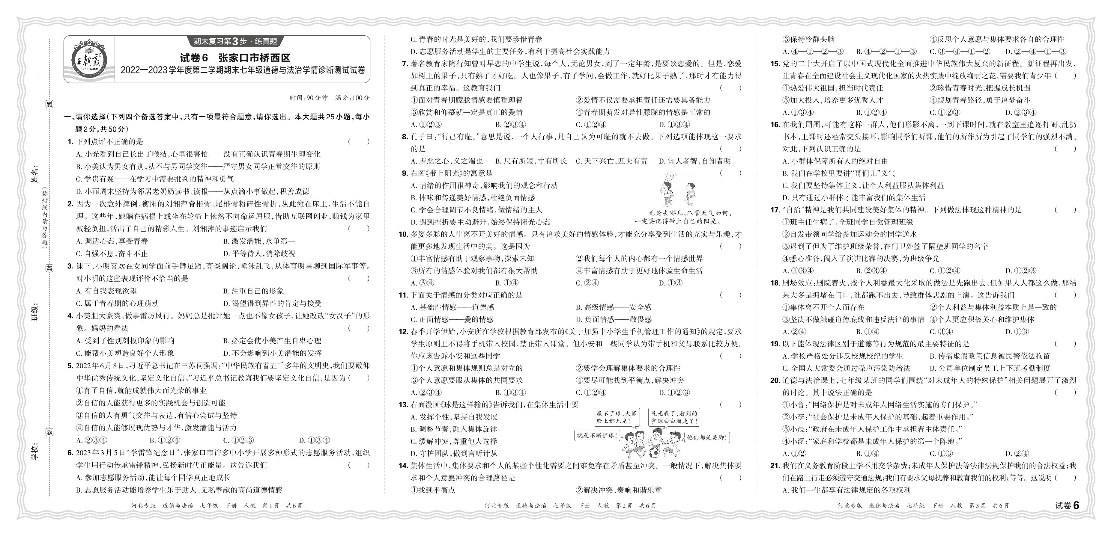 河北省张家口市桥西区2022-2023学年度第二学期期末七年级道德与法治学情诊断测试试卷(人教版)【6】