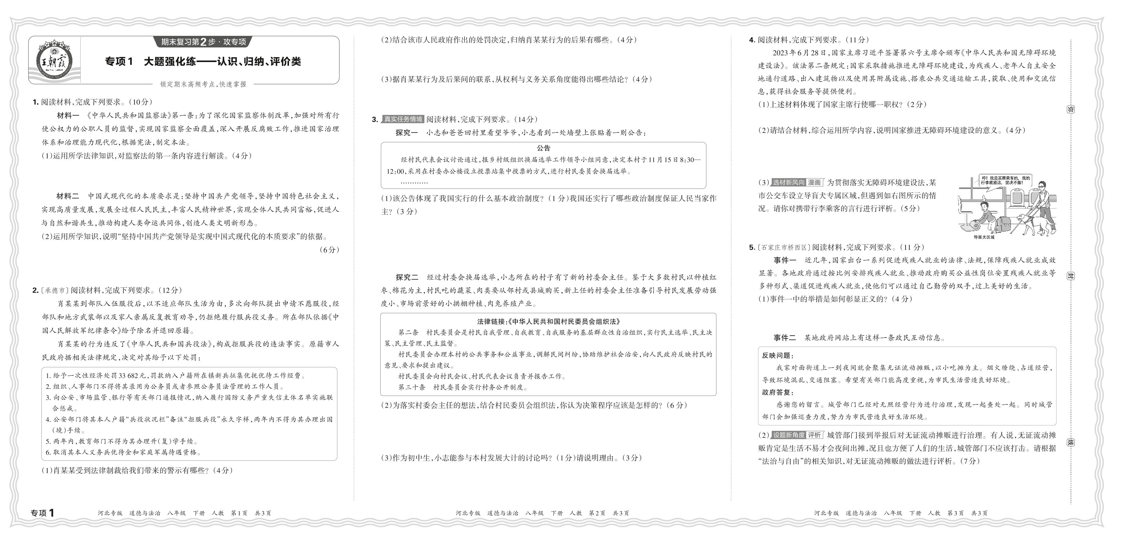 2024春下册八年级道德与法治人教版 期末专项卷河北版·大题强化练——认识、归纳、评价类【1】