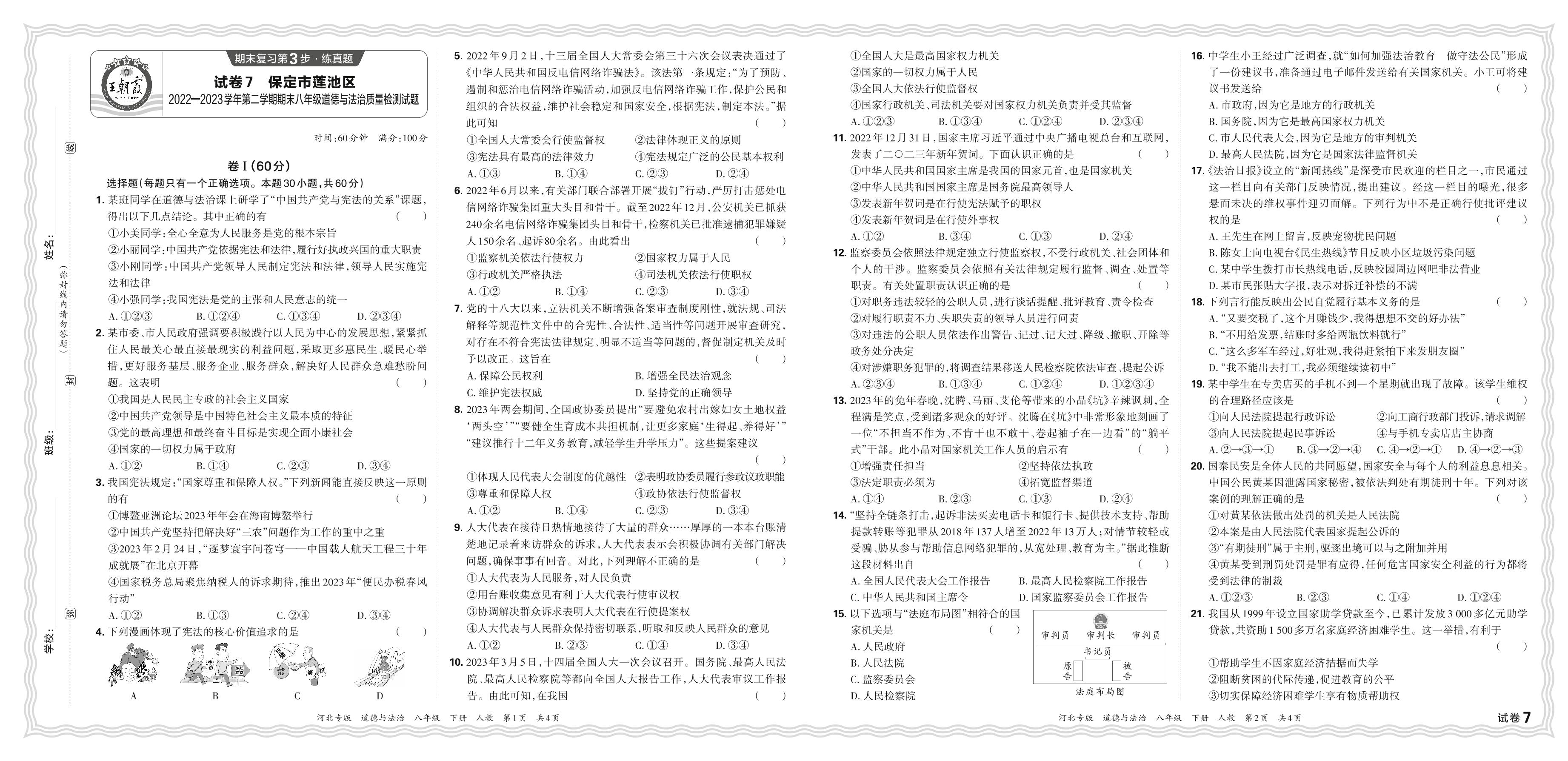 河北省保定市莲池区2022-2023学年第二学期期末八年级道德与法治质量检测试题(人教版)【7】