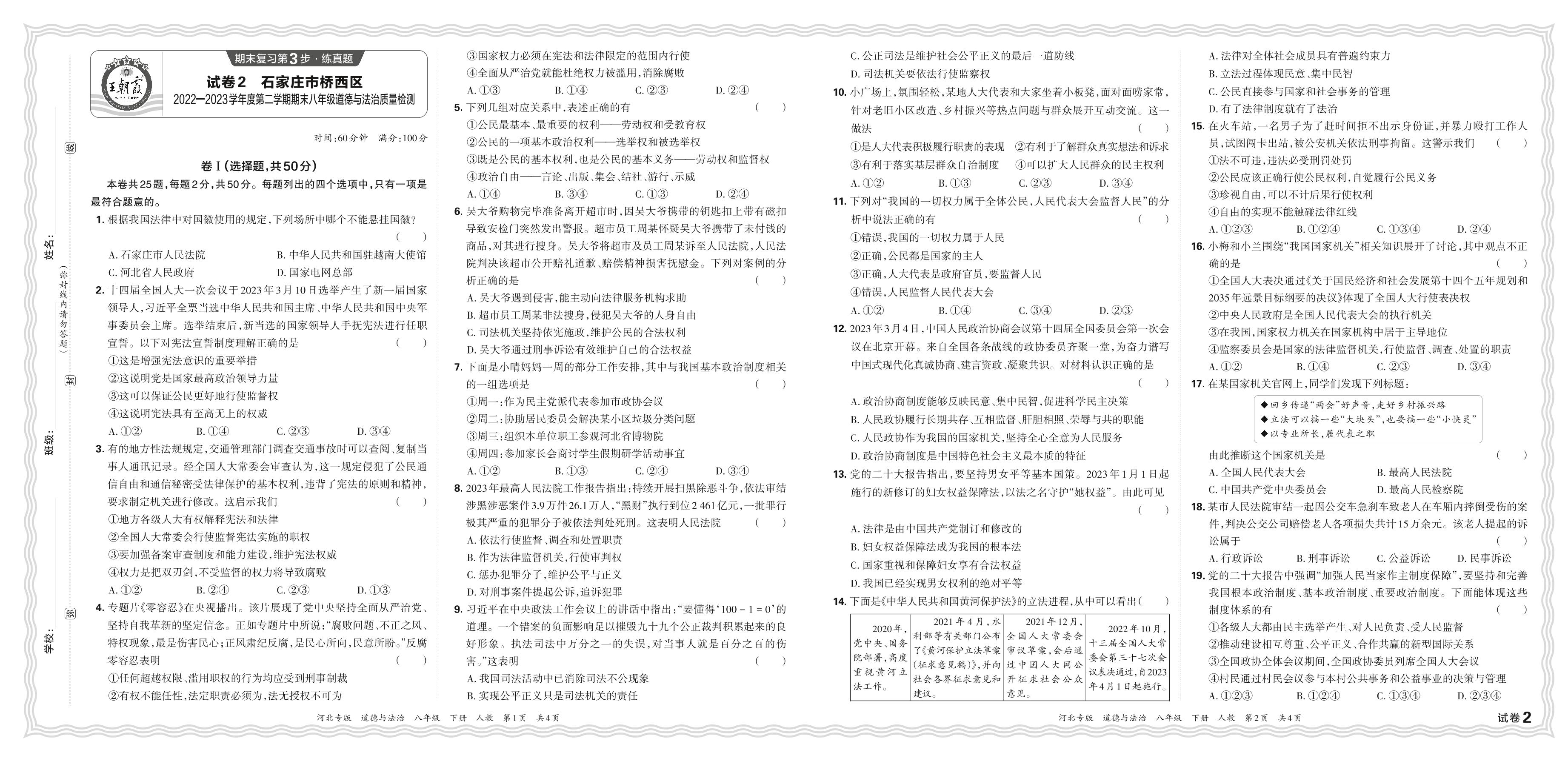 河北省石家庄市桥西区2022-2023学年度第二学期期末八年级道德与法治质量检测(人教版)【2】