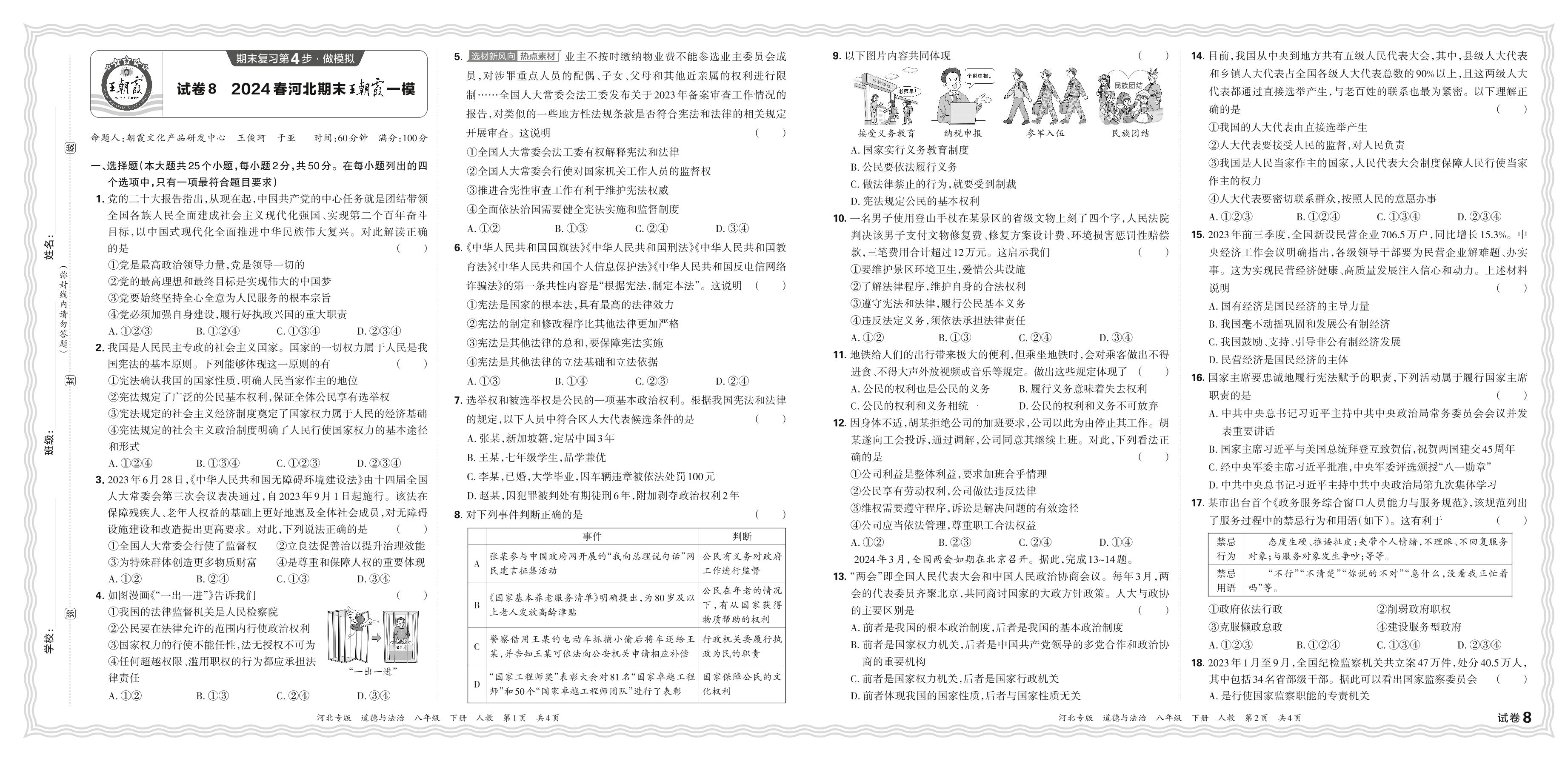 2024春下册八年级道德与法治人教版 河北期末王朝霞一模【8】