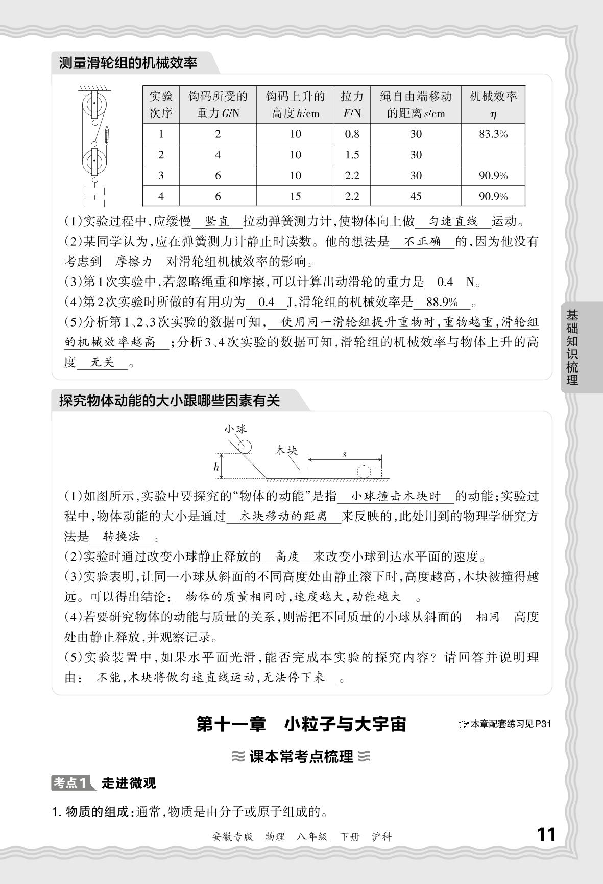 2024春下册八年级物理沪科版 期末过课本安徽版·基础知识梳理 第十一章 小粒子与大宇宙