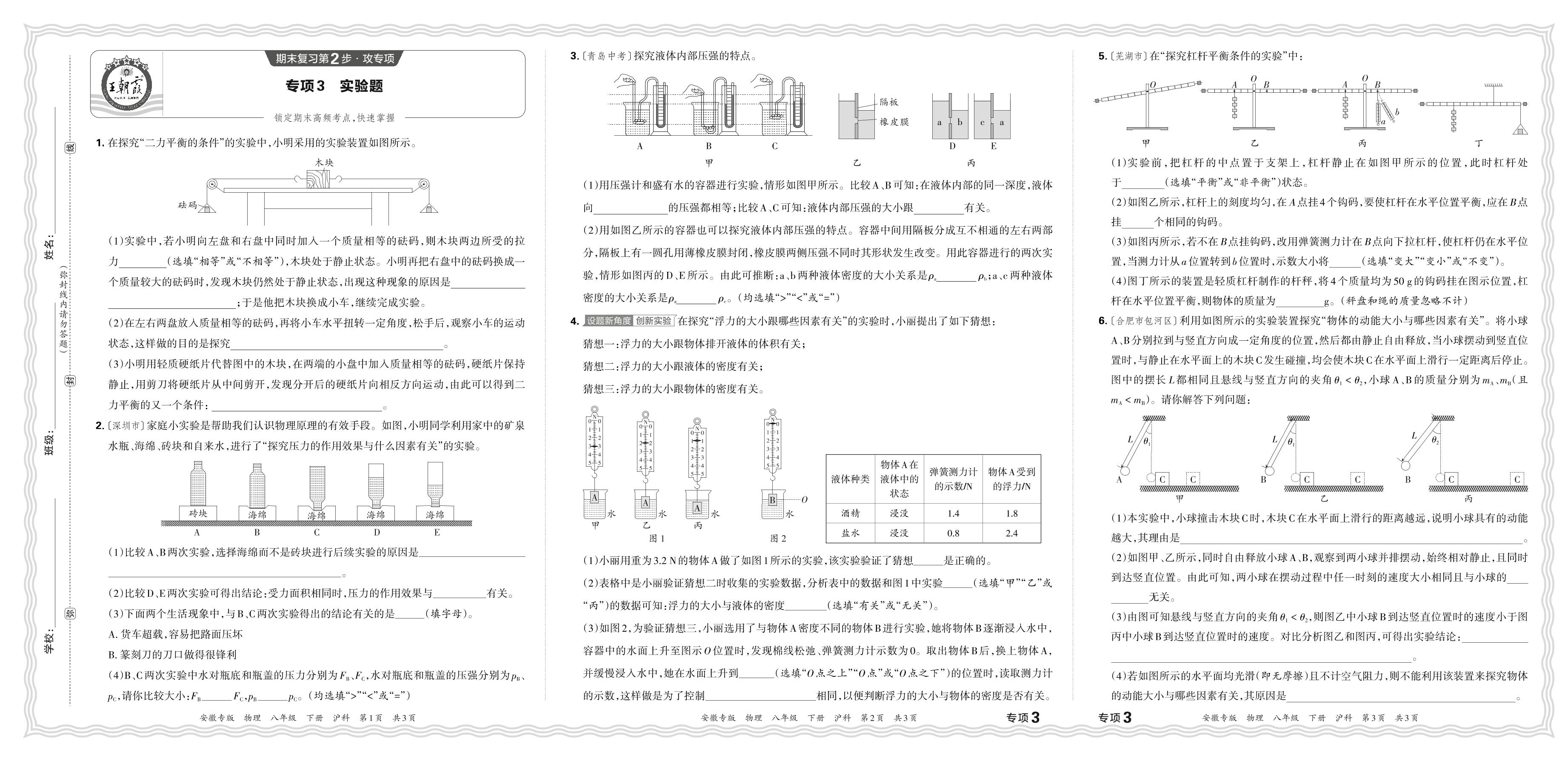 2024春下册八年级物理沪科版 期末专项卷安徽版·实验题【3】