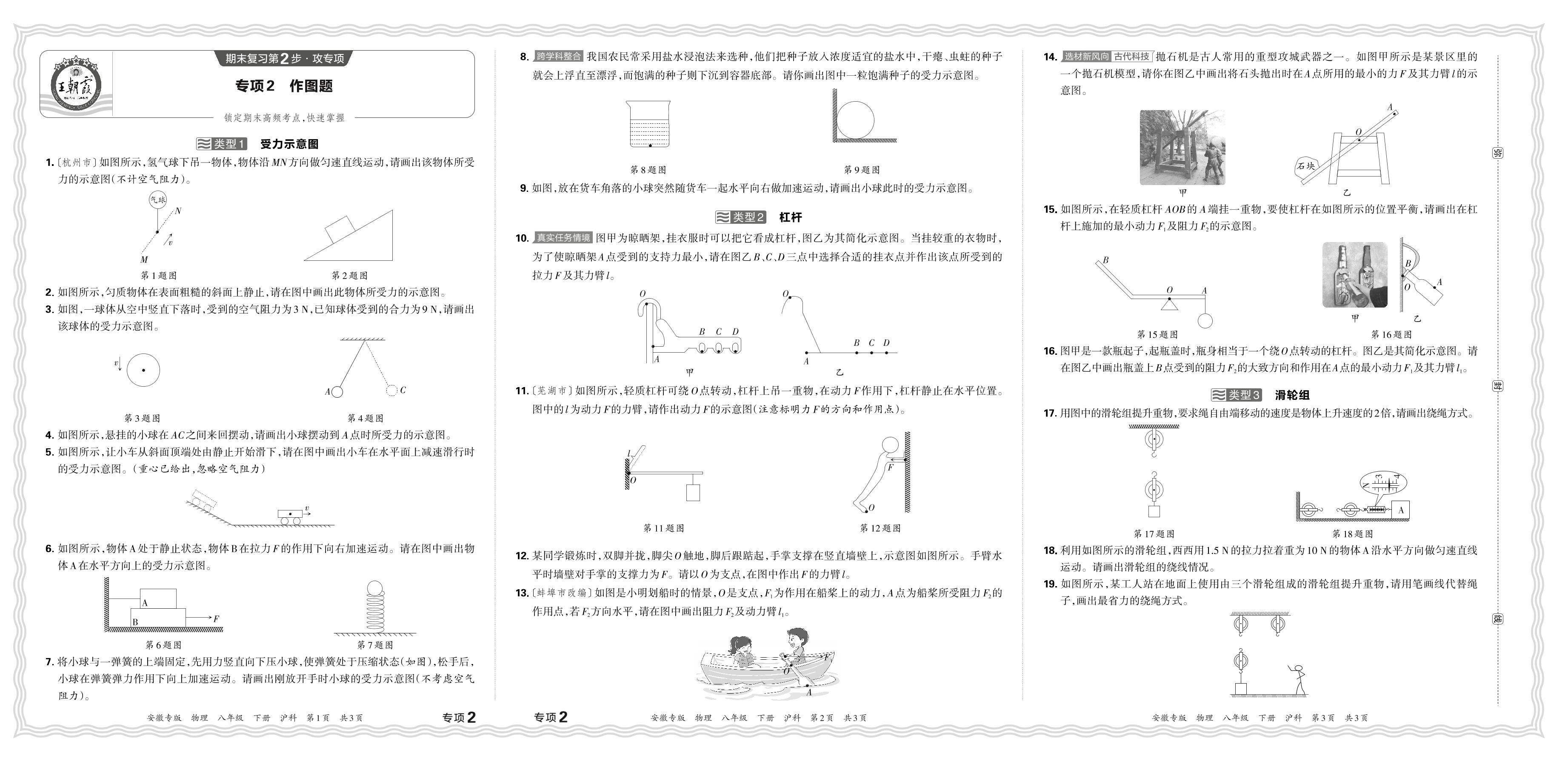 2024春下册八年级物理沪科版 期末专项卷安徽版·作图题【2】