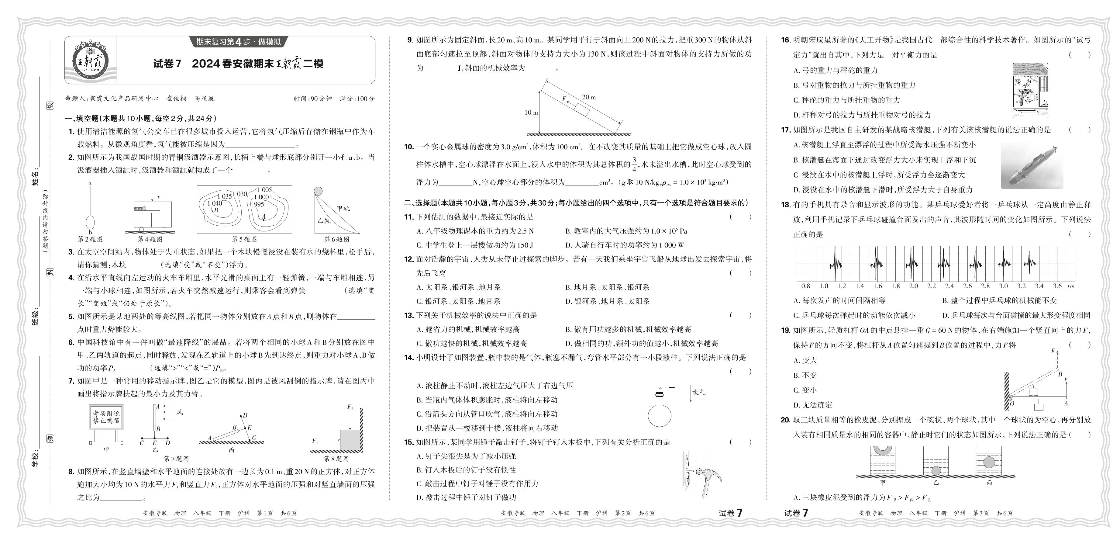 2024春下册八年级物理沪科版 安徽期末王朝霞二模