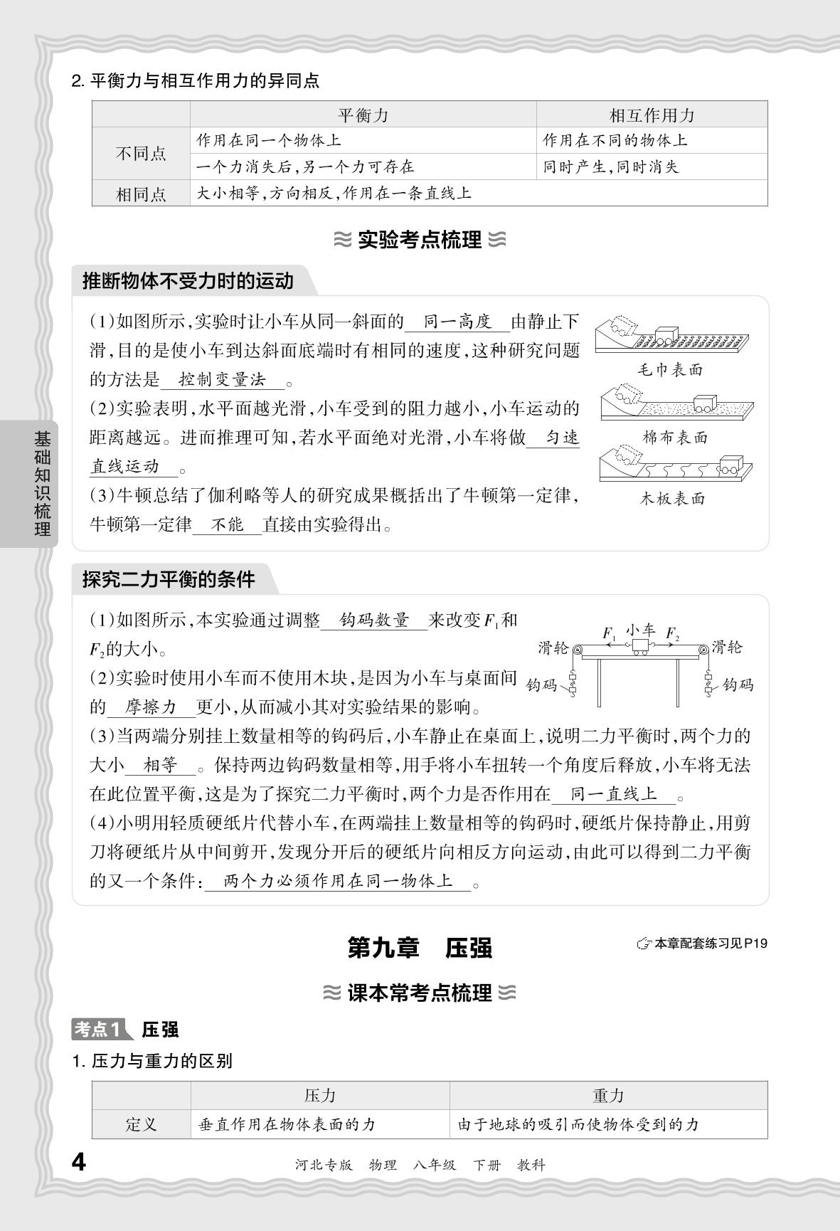 2024春下册八年级物理教科版 期末过课本河北版·基础知识梳理 第九章 压强