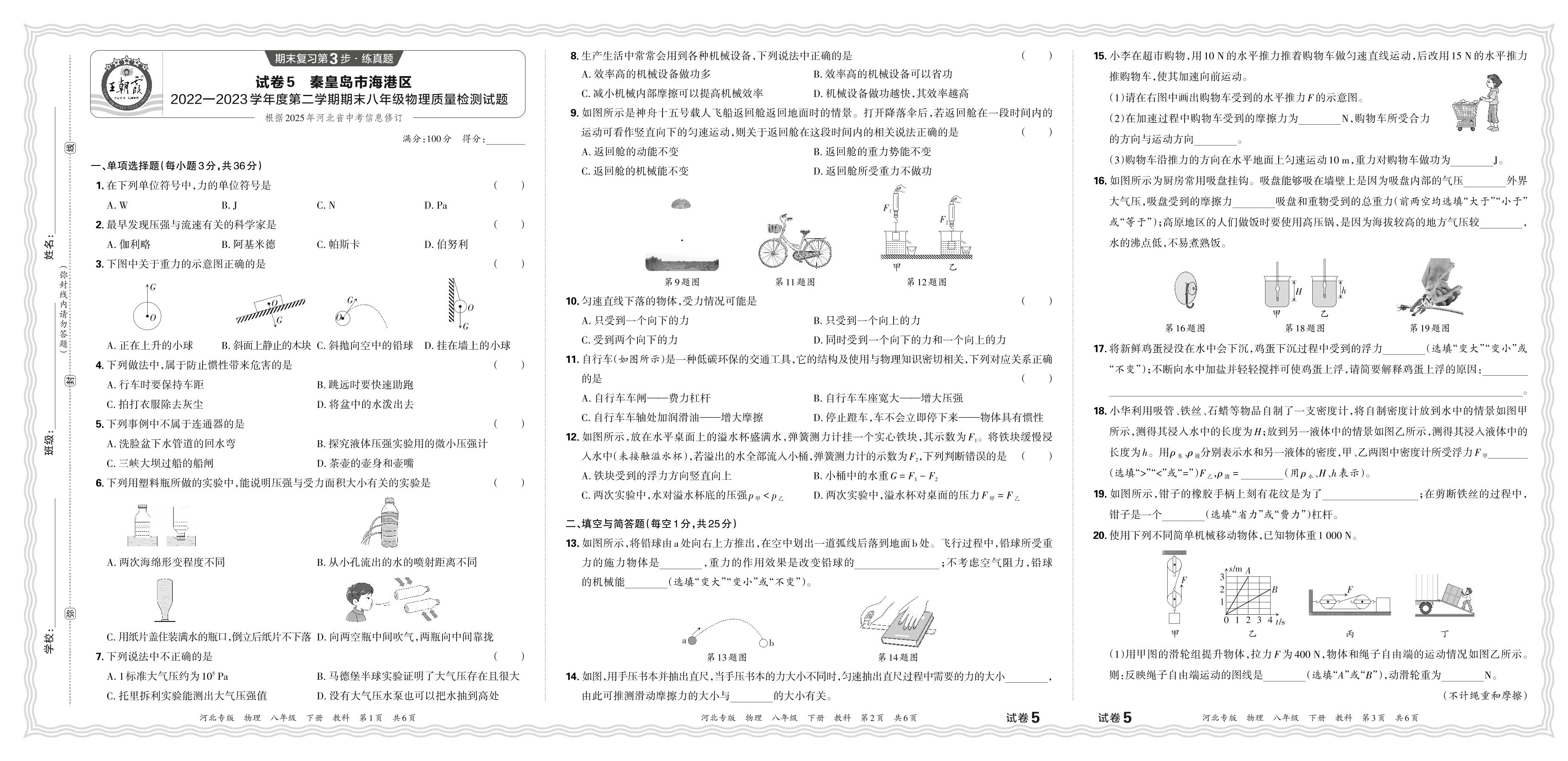 河北省秦皇岛市海港区2022-2023学年度第二学期期末八年级物理质量检测试题(教科版)【5】