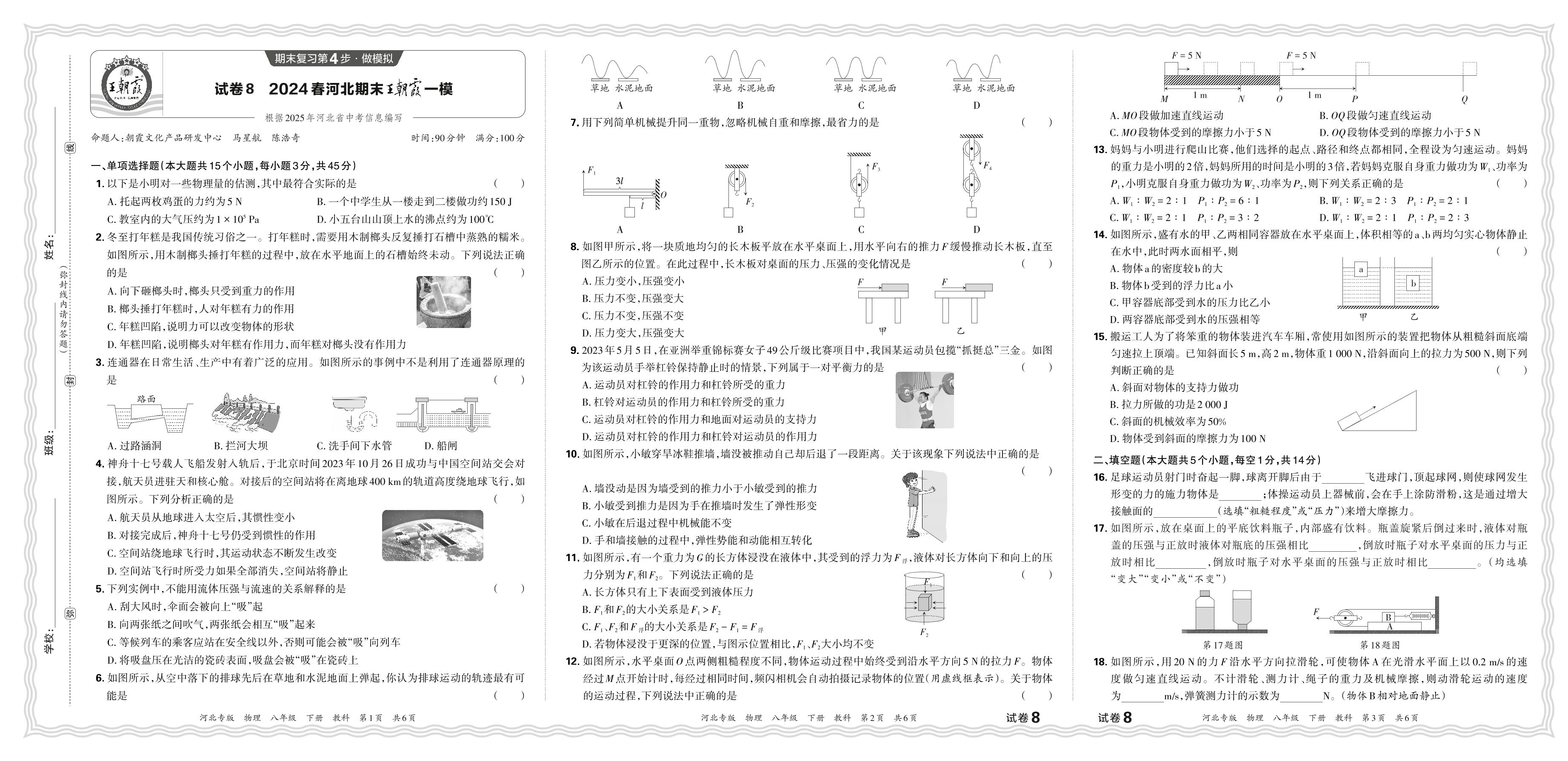 2024春下册八年级物理教科版 河北期末王朝霞一模【8】