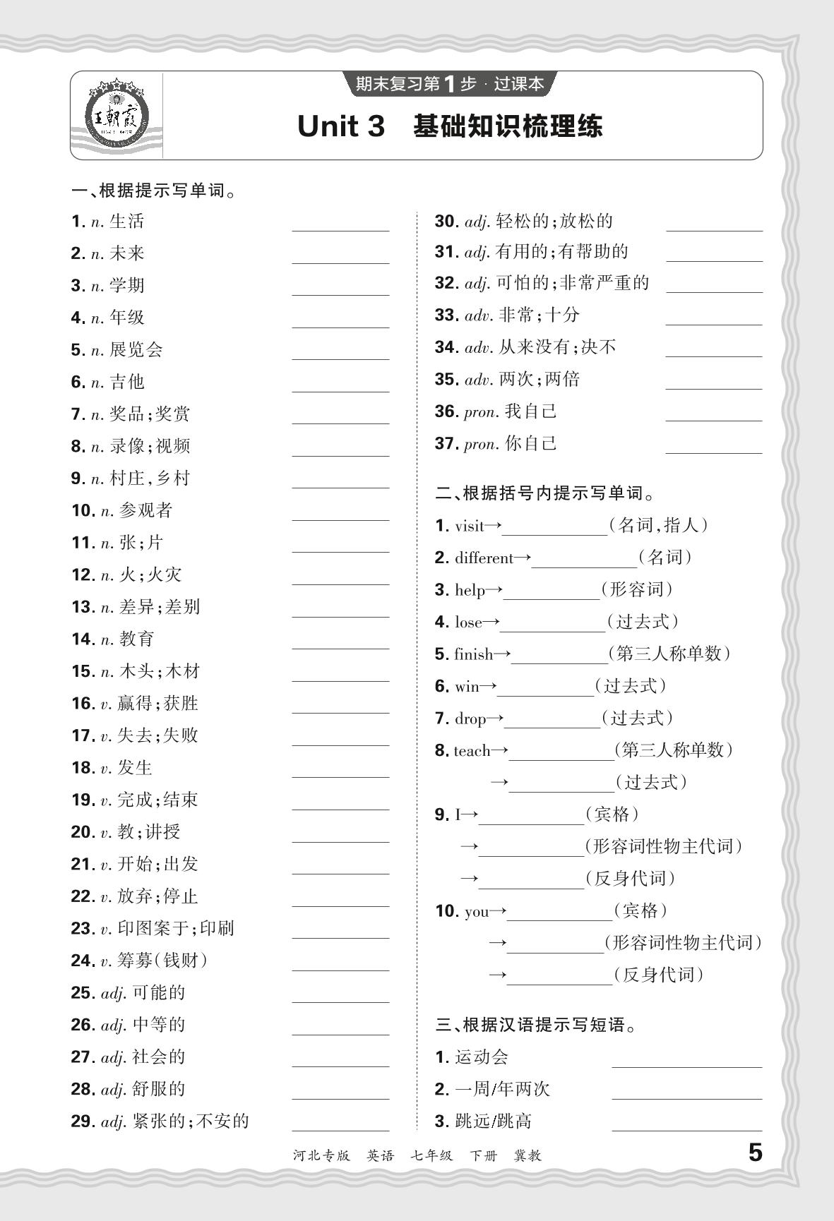2024春下册七年级英语冀教版 期末过课本河北版·Unit 3 基础知识梳理练