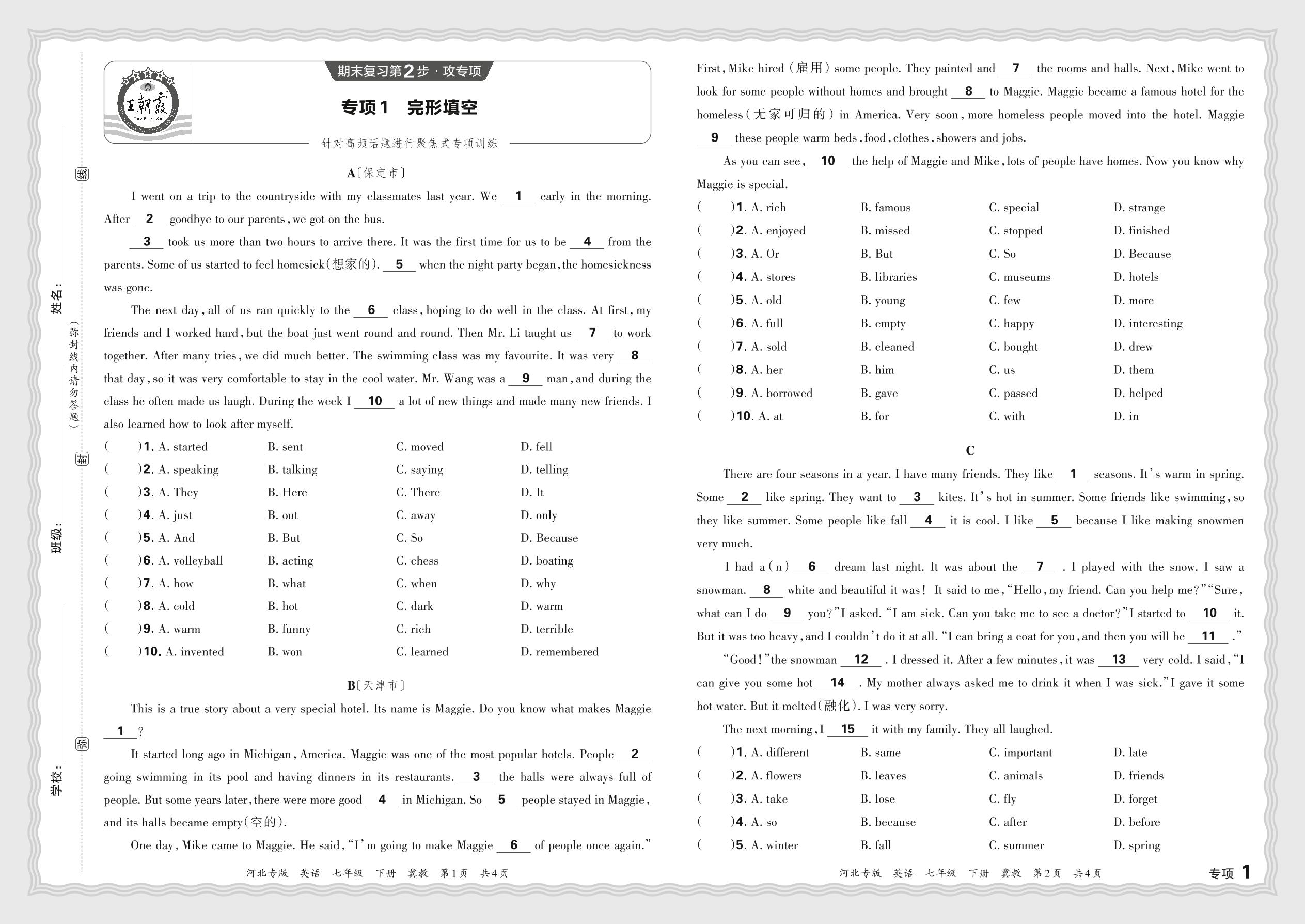 2024春下册七年级英语冀教版 期末专项卷河北版·完形填空【1】