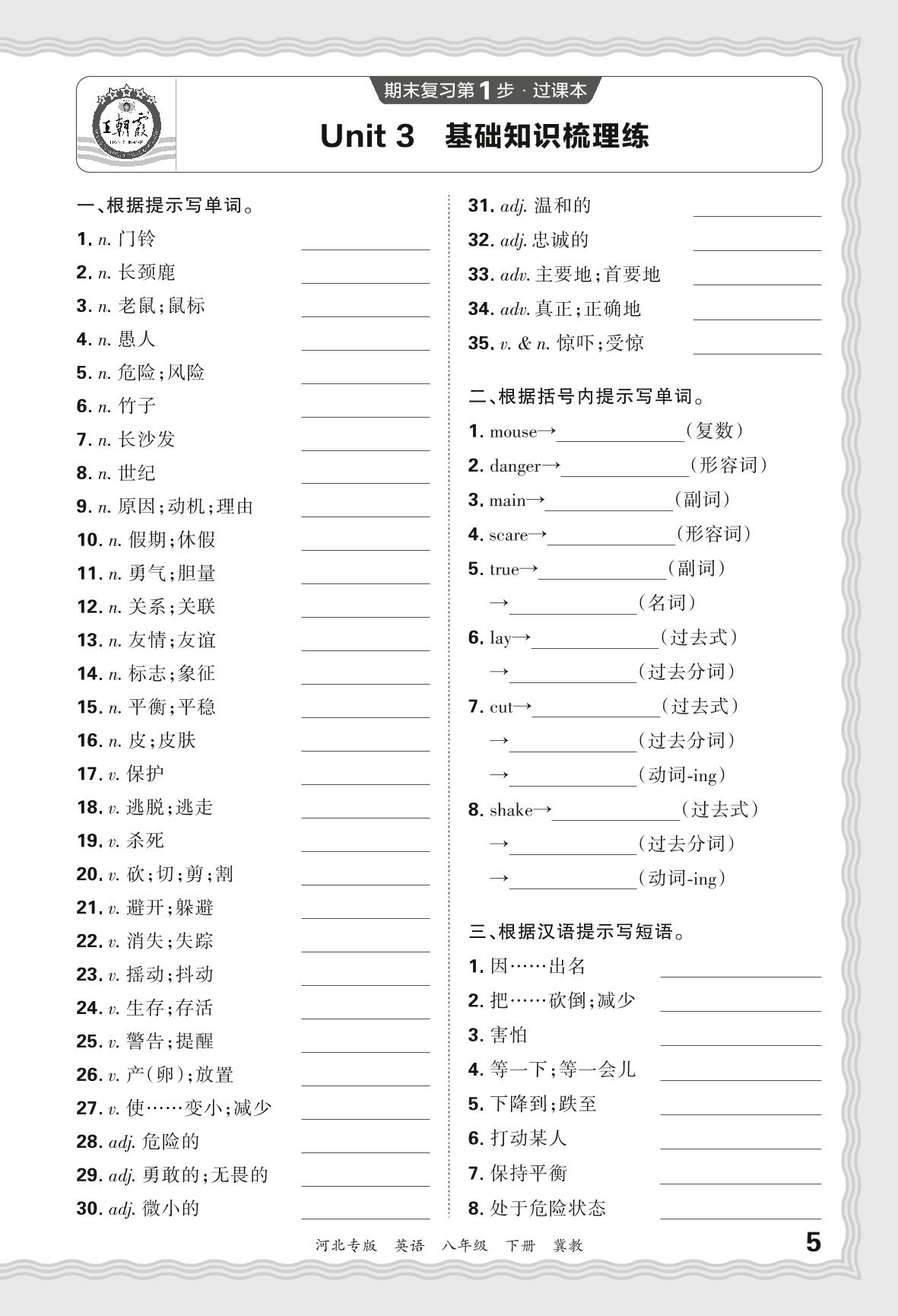 2024春下册八年级英语冀教版 期末过课本河北版·Unit 3 基础知识梳理练