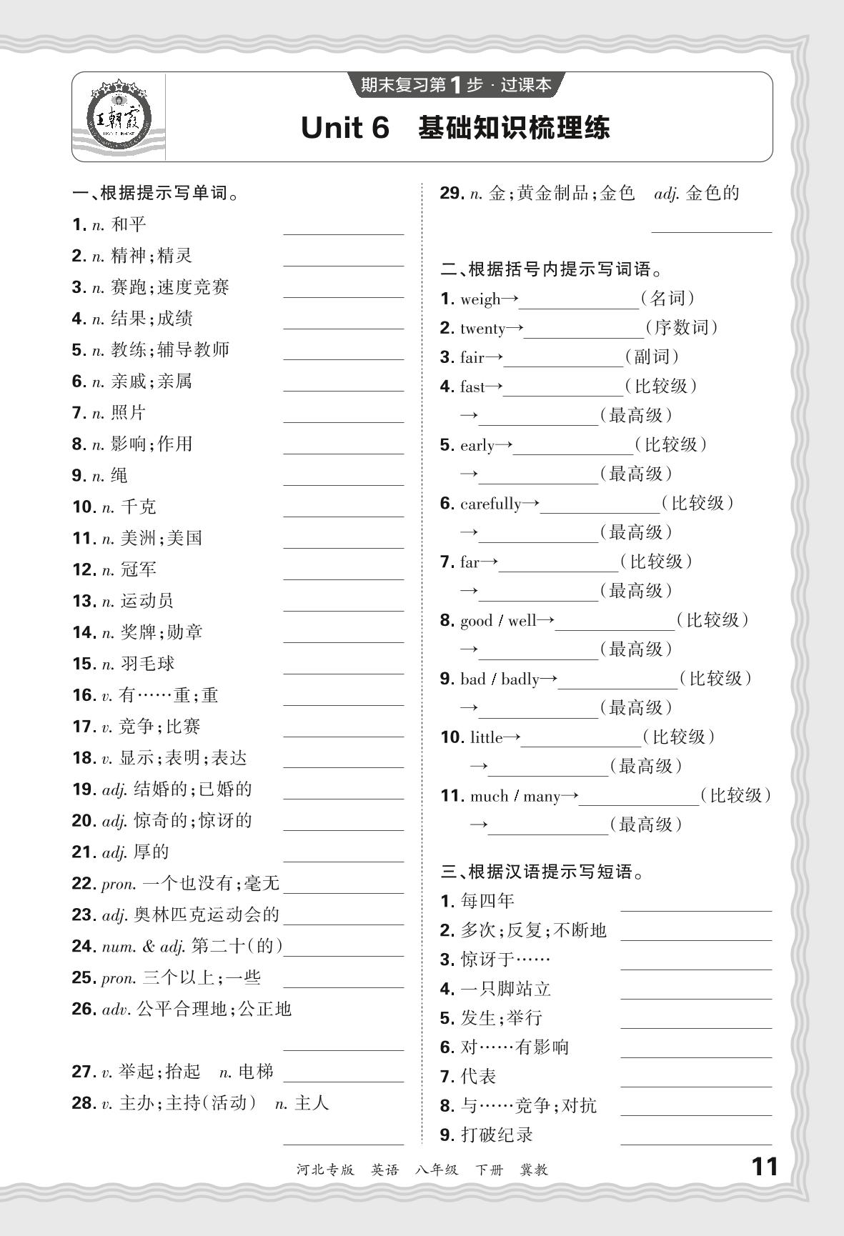 2024春下册八年级英语冀教版 期末过课本河北版·Unit 6 基础知识梳理练