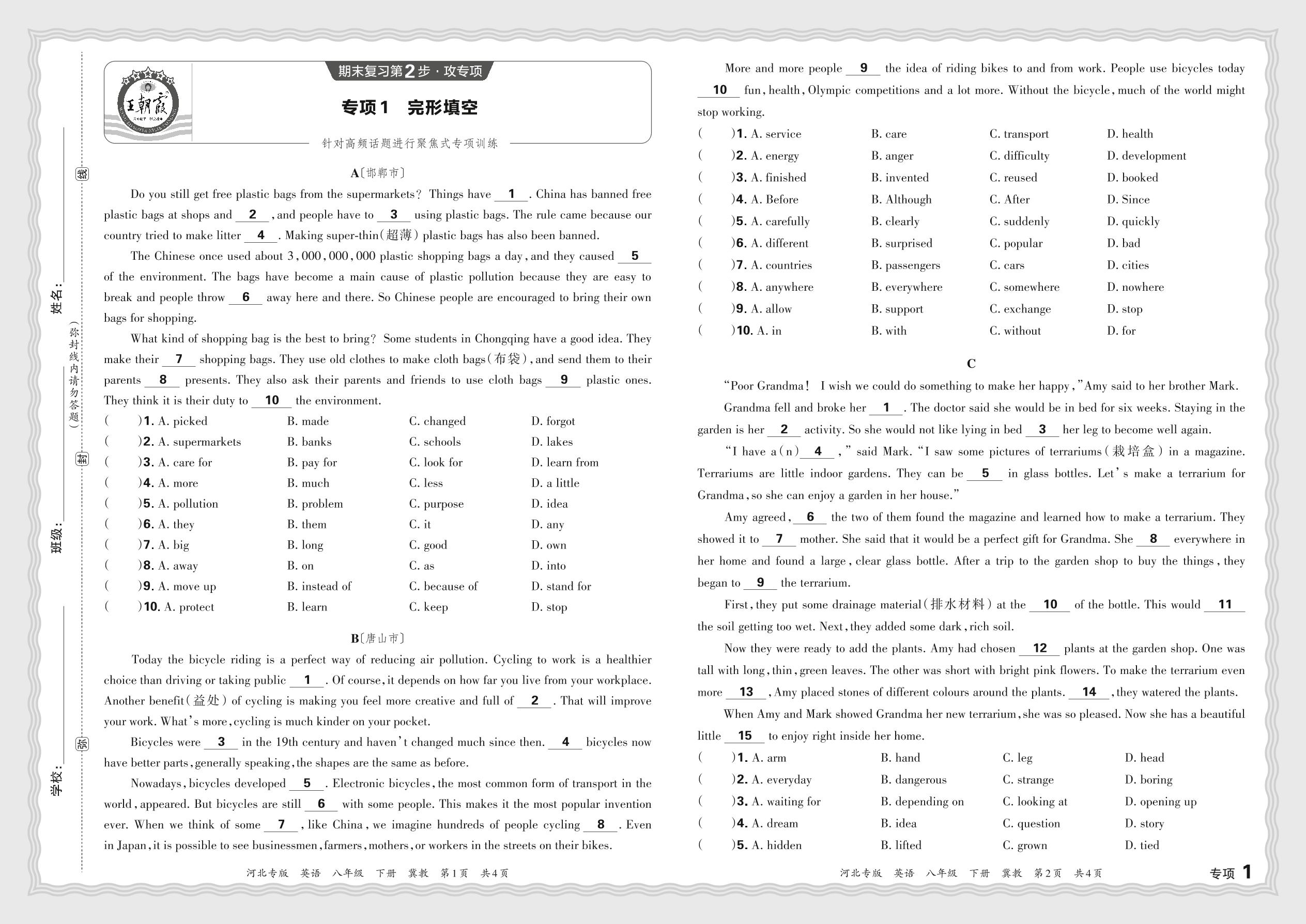 2024春下册八年级英语冀教版 期末专项卷河北版·完形填空【1】