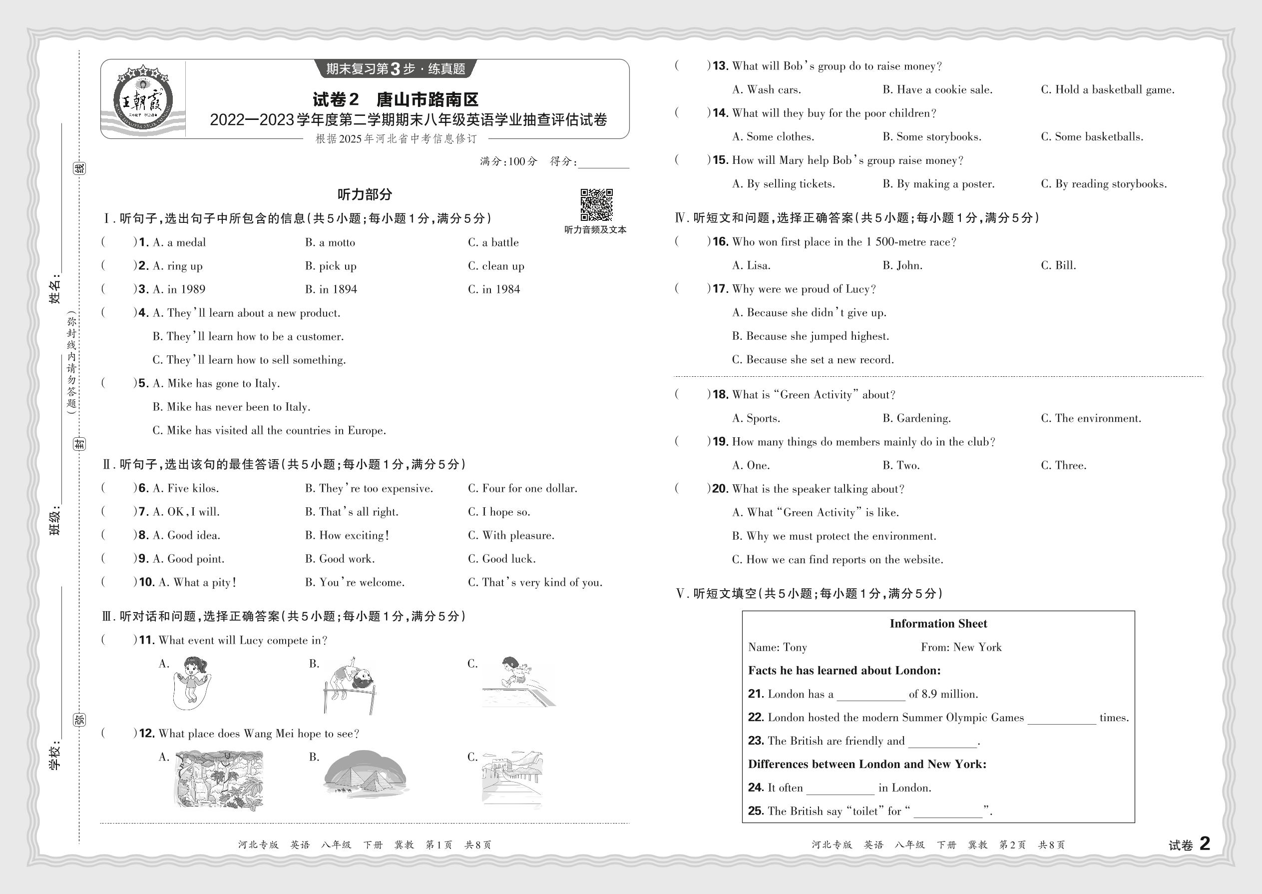 河北省唐山市路南区2022-2023学年度第二学期期末八年级英语学业抽查评估试卷(冀教版)【2】