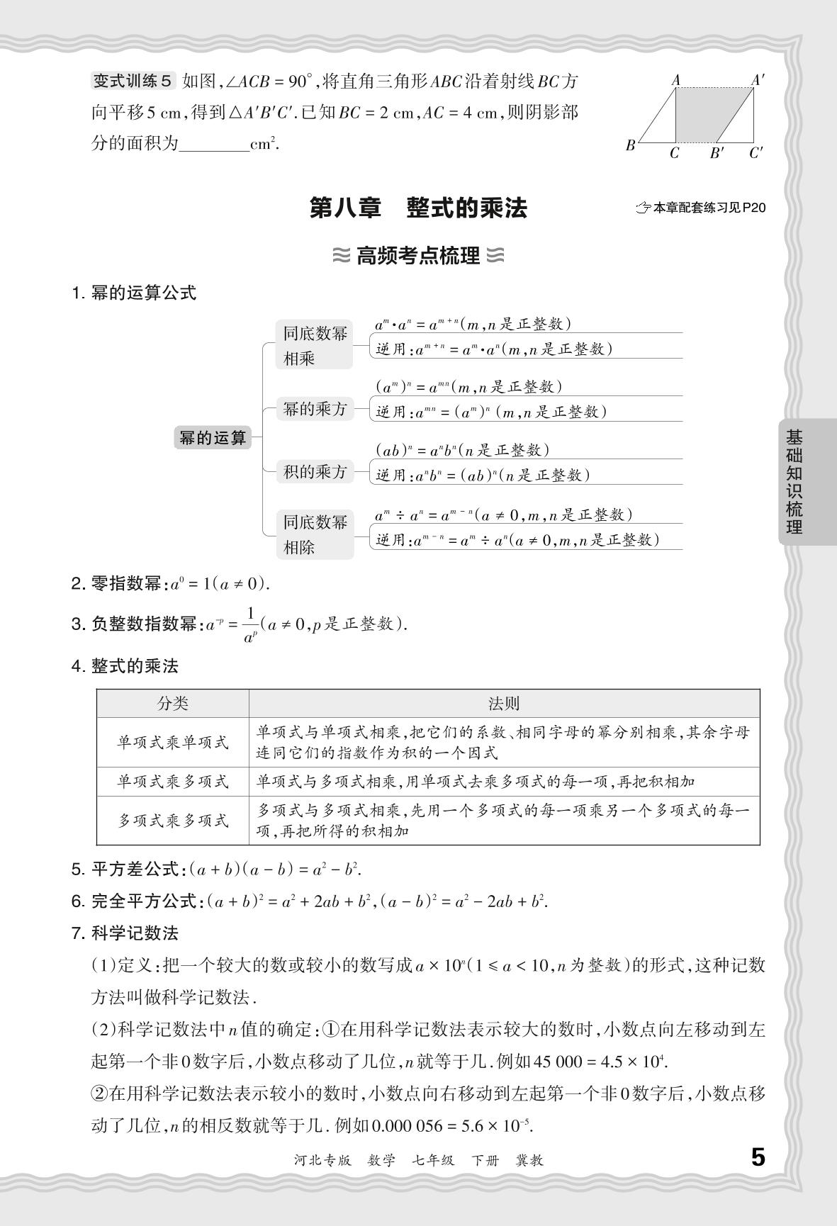 2024春下册七年级数学冀教版 期末过课本河北版·基础知识梳理 第八章 整式的乘法