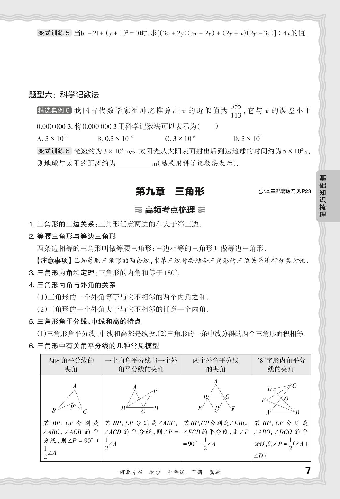 2024春下册七年级数学冀教版 期末过课本河北版·基础知识梳理 第九章 三角形