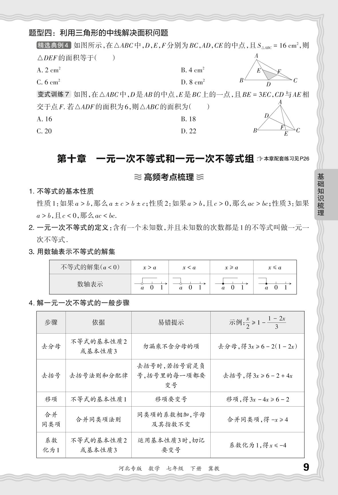 2024春下册七年级数学冀教版 期末过课本河北版·基础知识梳理 第十章 一元一次不等式和一元一次不等式组