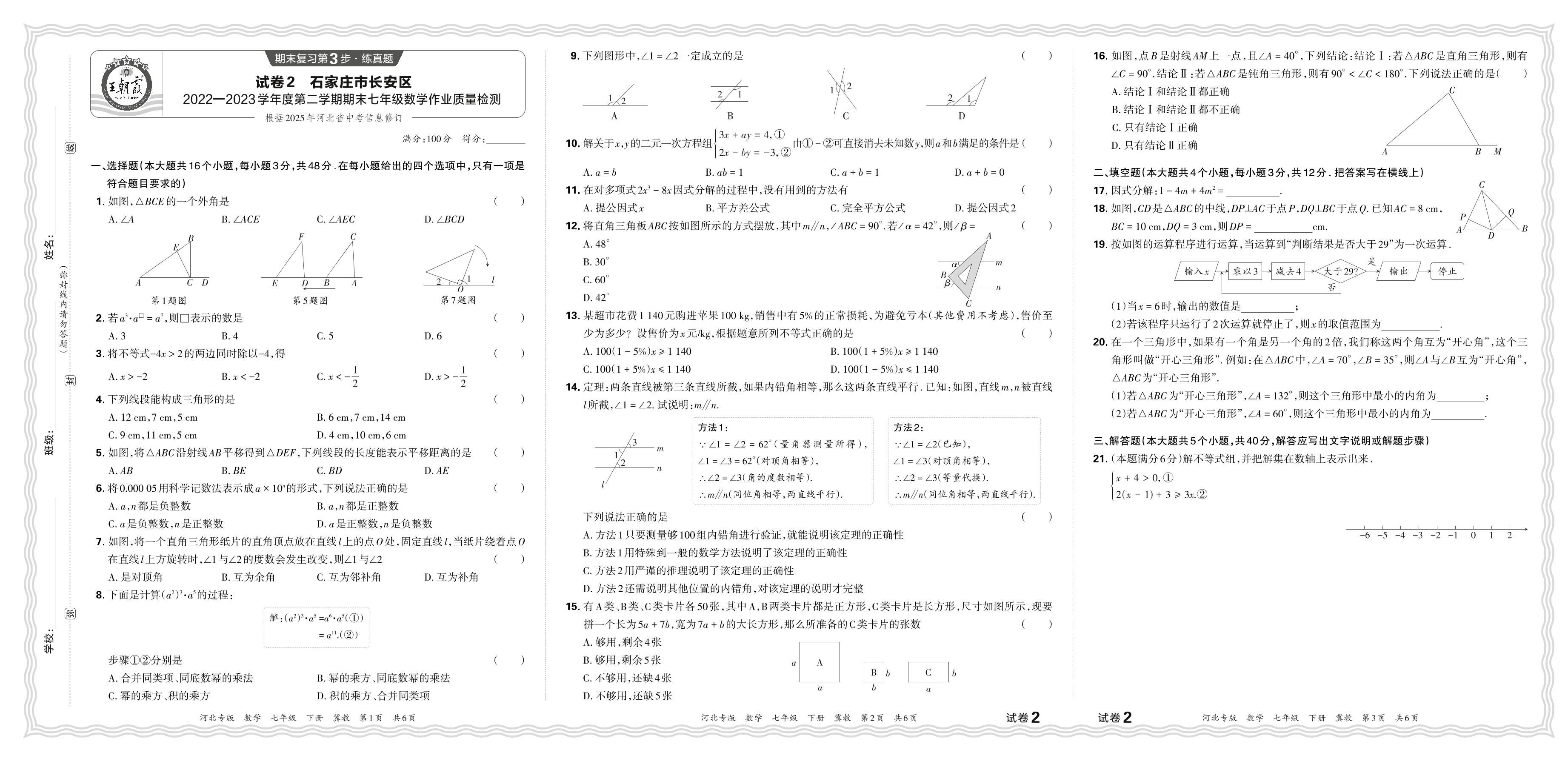 河北省石家庄市长安区2022-2023学年度第二学期期末七年级数学作业质量检测(冀教版)【2】