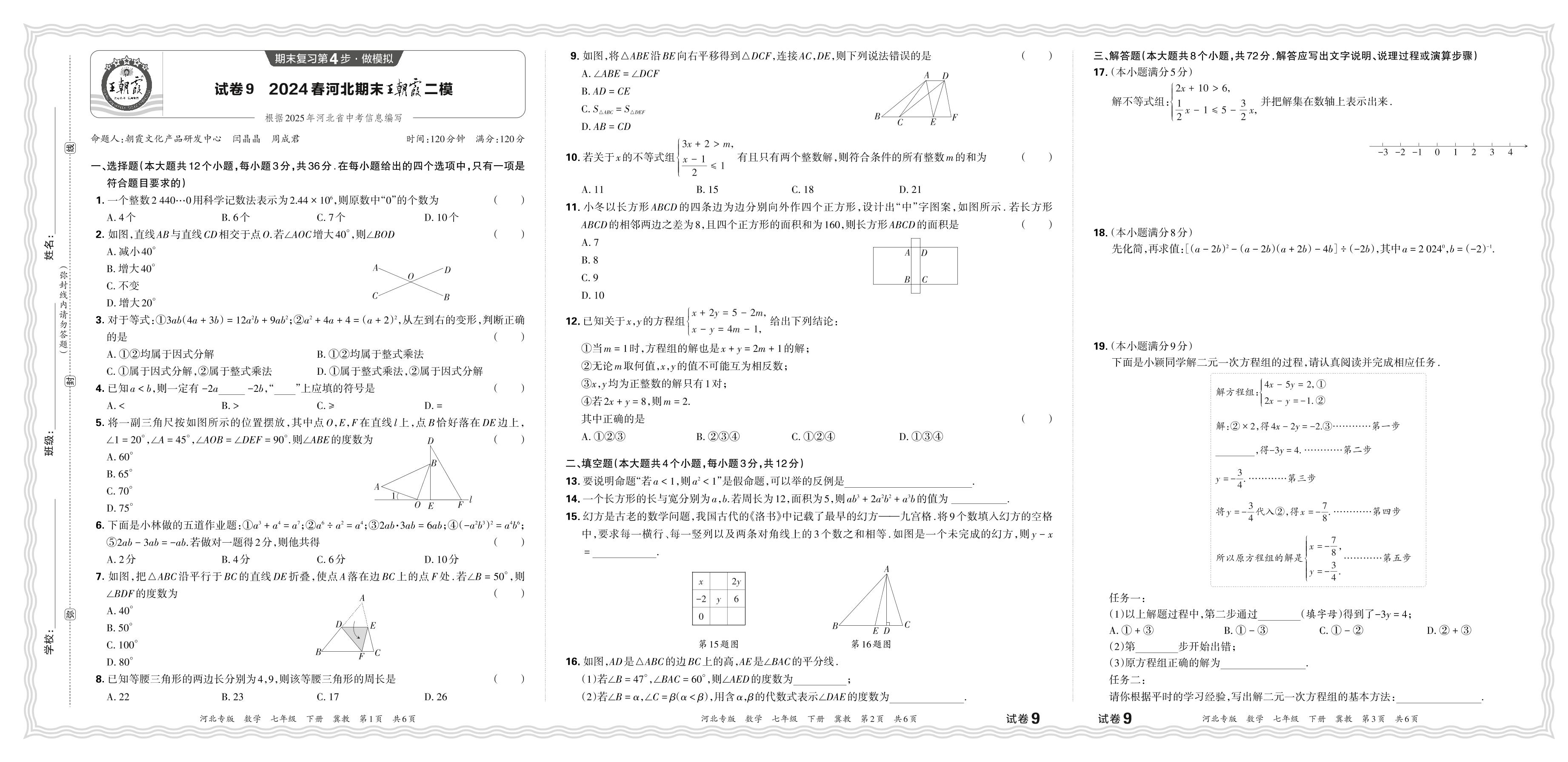 2024春下册七年级数学冀教版 河北期末王朝霞二模【9】