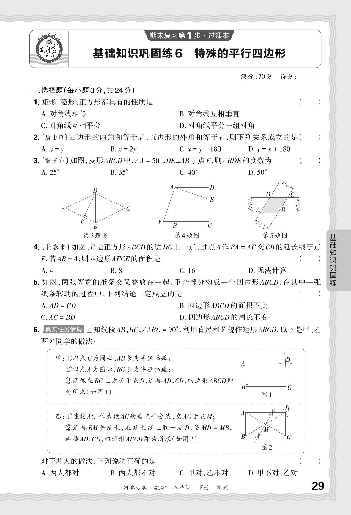 2024春下册八年级数学冀教版 期末过课本河北版·基础知识巩固练 特殊的平行四边形【6】
