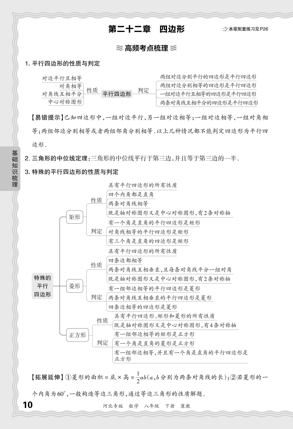 2024春下册八年级数学冀教版 期末过课本河北版·基础知识梳理 第二十二章 四边形