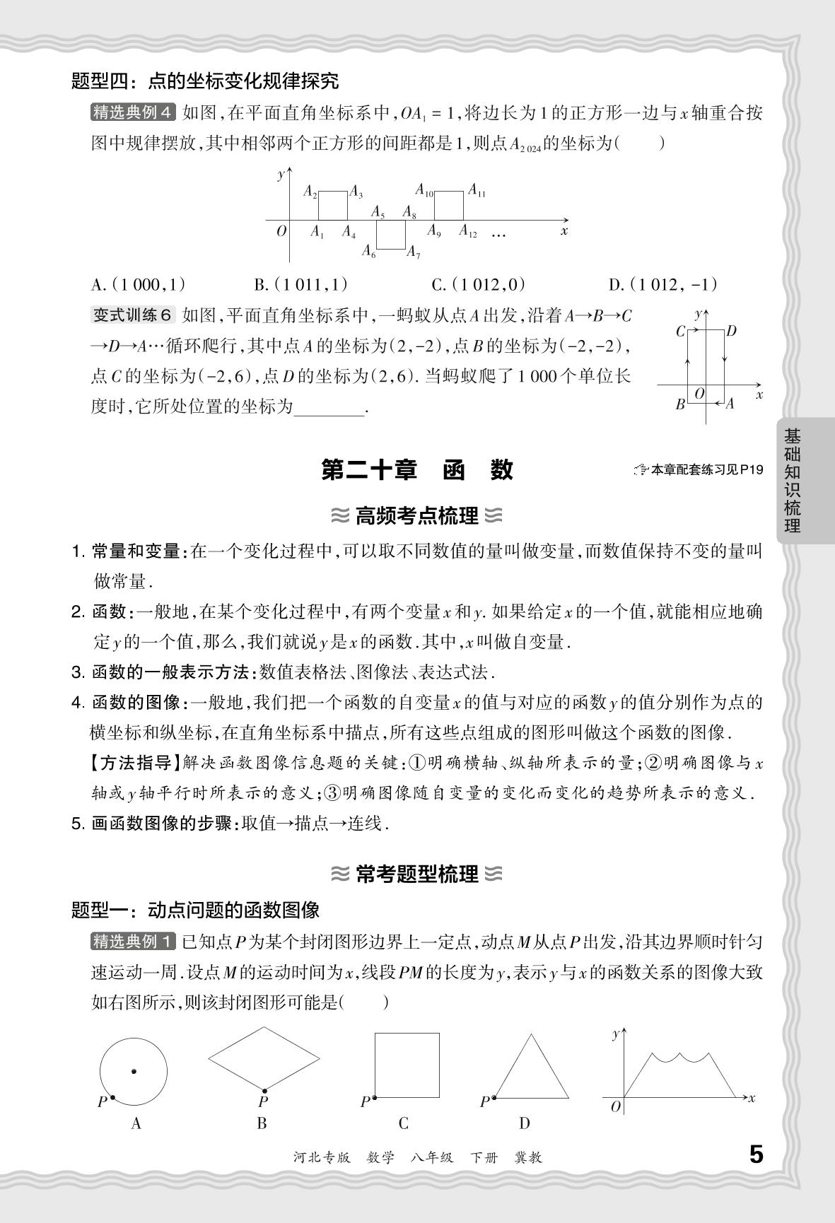 2024春下册八年级数学冀教版 期末过课本河北版·基础知识梳理 第二十章 函数