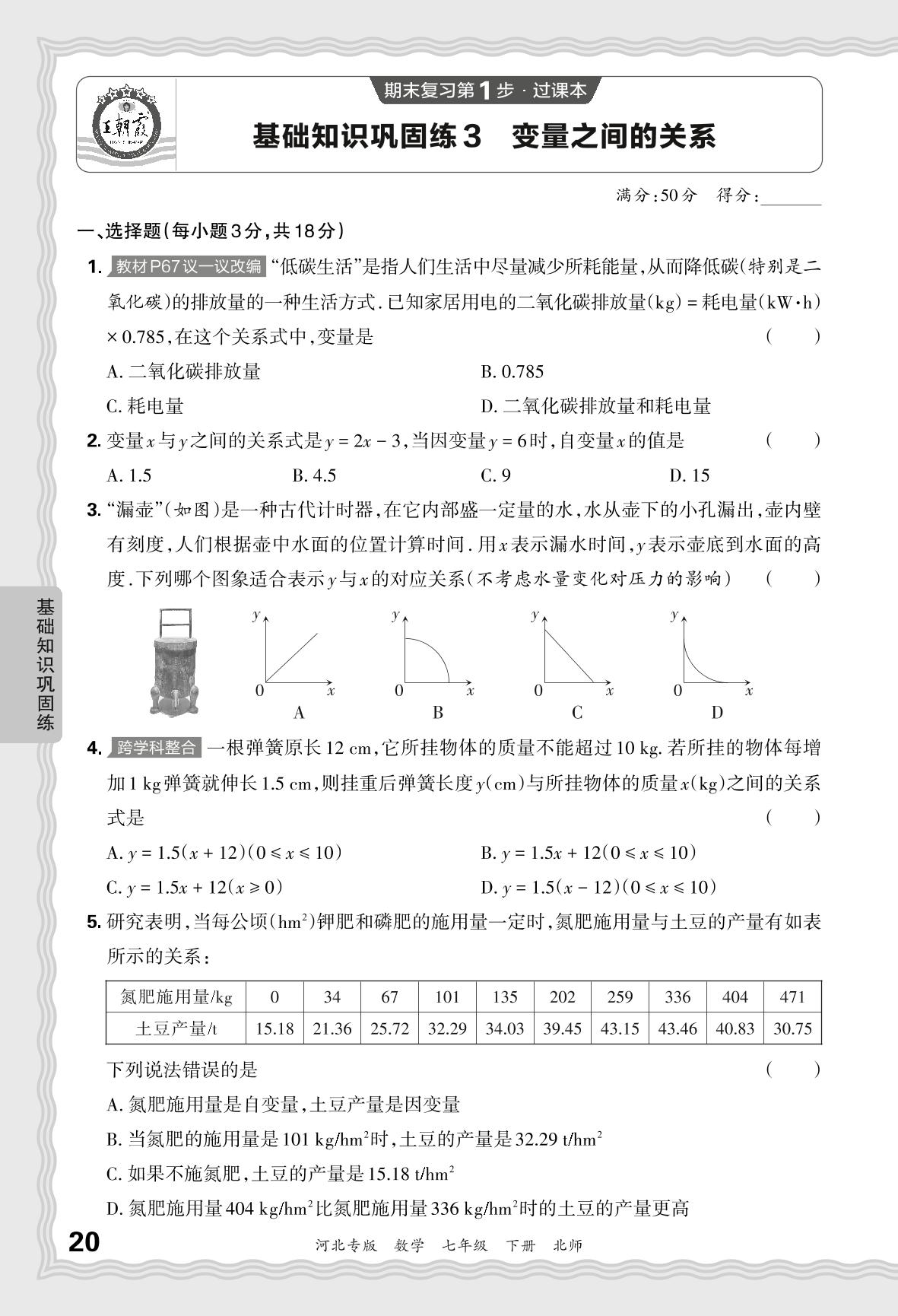 2024春下册七年级数学北师版 期末过课本河北版·基础知识巩固练 变量之间的关系【3】